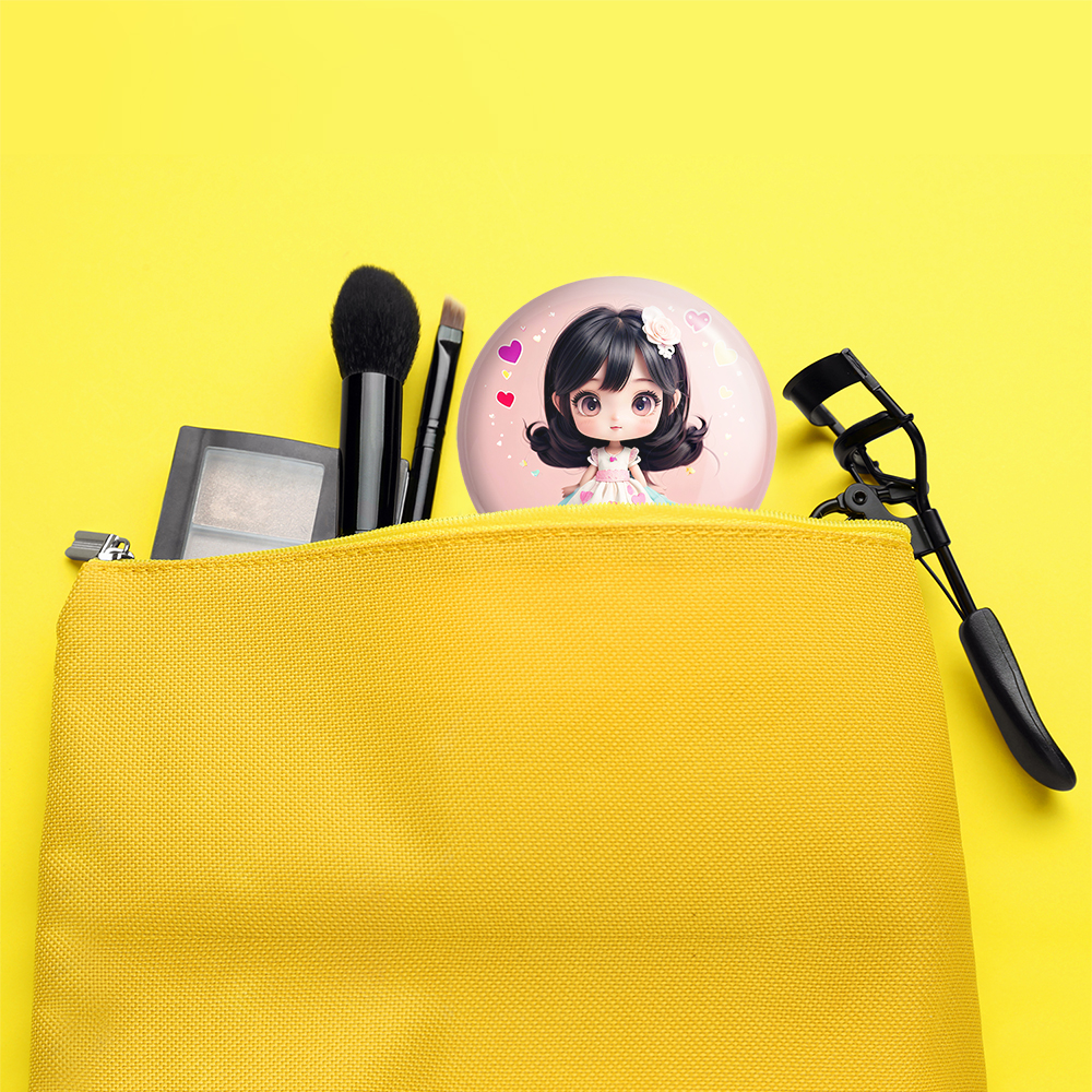آینه های جیبی دخترانه (Girlish) خندالو دایره ای به قطر 7.5 سانتی متر می باشد که نه خیلی بزرگ و غیر قابل استفاده در کیف آرایشی ست و نه خیلی کوچک که تصویر خاصی در آن مشاهده نشود. سایزی استاندارد و کارآمد دارد و مناسب قرار گیری در کیف لوازم آرایش و کیف های کوچک دستی نیز هست.