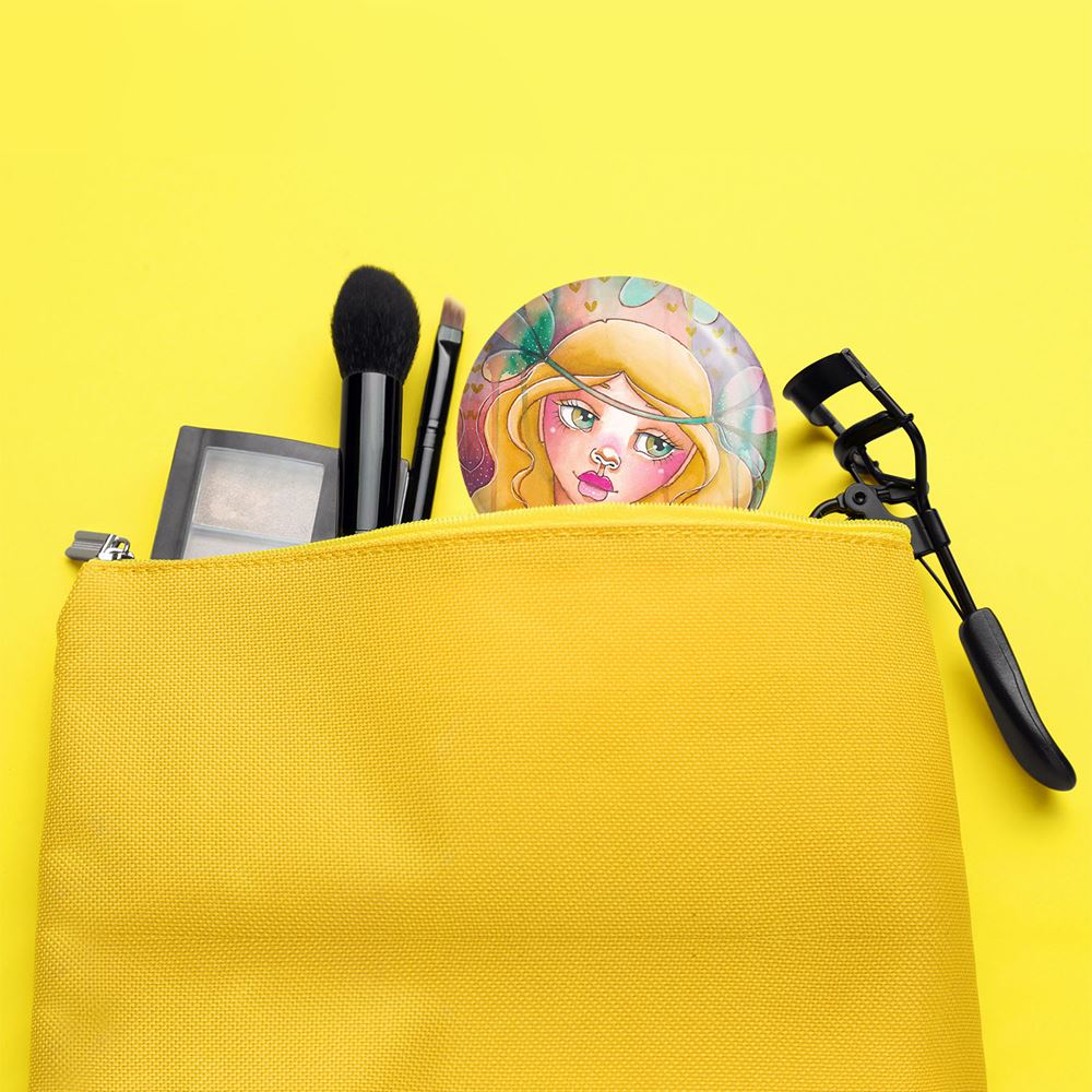 آینه های جیبی دخترونه خندالو دایره ای به قطر 7.5 سانتی متر می باشد که نه خیلی بزرگ و غیر قابل استفاده در کیف آرایشی ست و نه خیلی کوچک که تصویر خاصی در آن مشاهده نشود. سایزی استاندارد و کارآمد دارد و مناسب قرار گیری در کیف لوازم آرایش و کیف های کوچک دستی نیز هست.