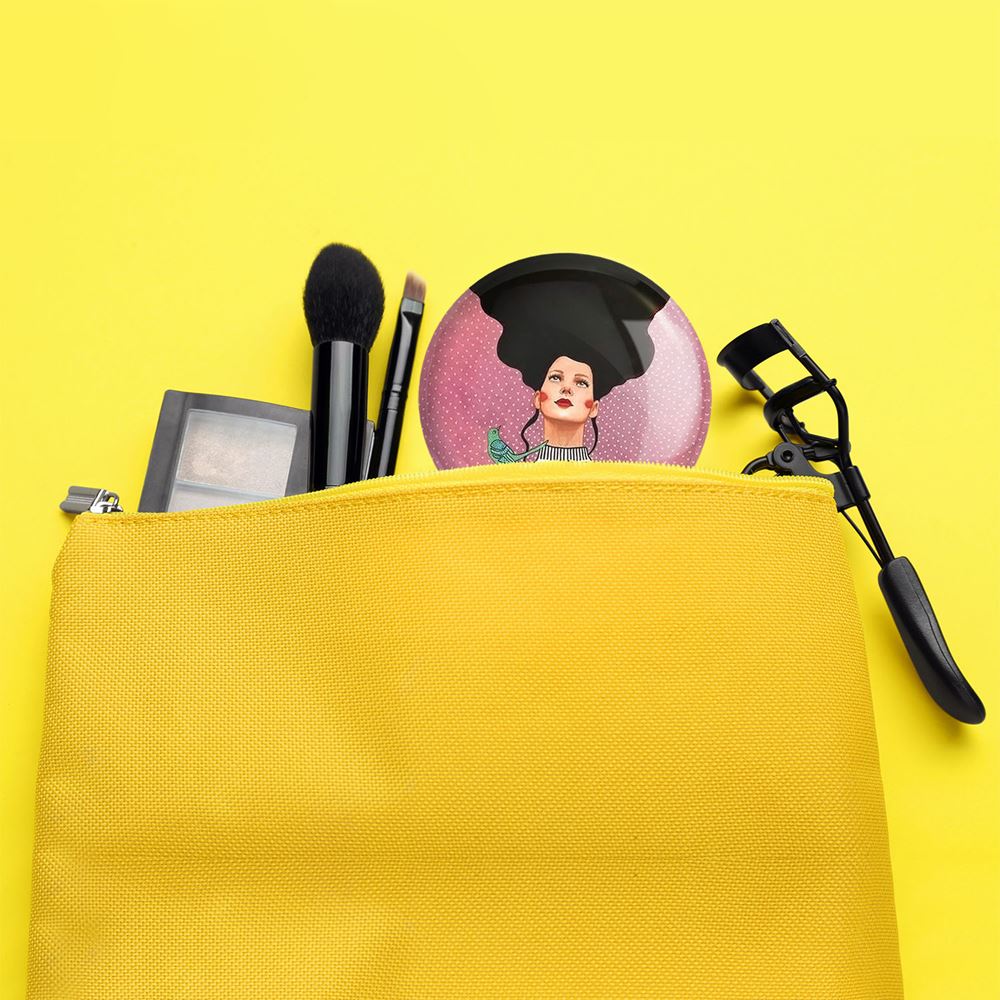 آینه های جیبی دخترونه خندالو دایره ای به قطر 7.5 سانتی متر می باشد که نه خیلی بزرگ و غیر قابل استفاده در کیف آرایشی ست و نه خیلی کوچک که تصویر خاصی در آن مشاهده نشود. سایزی استاندارد و کارآمد دارد و مناسب قرار گیری در کیف لوازم آرایش و کیف های کوچک دستی نیز هست.