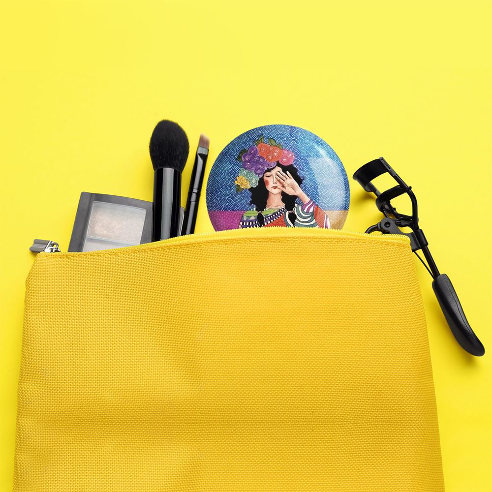 آینه های جیبی دخترونه خندالو دایره ای به قطر 7.5 سانتی متر می باشد که نه خیلی بزرگ و غیر قابل استفاده در کیف آرایشی ست و نه خیلی کوچک که تصویر خاصی در آن مشاهده نشود. سایزی استاندارد و کارآمد دارد و مناسب قرار گیری در کیف لوازم آرایش و کیف های کوچک دستی نیز هست.
