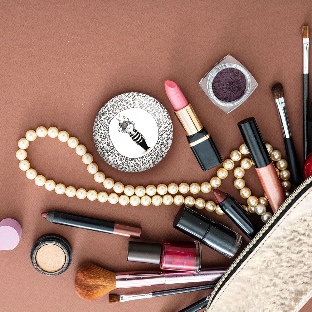 آینه های جیبی دخترونه خندالو دایره ای به قطر 7.5 سانتی متر می باشد که نه خیلی بزرگ و غیر قابل استفاده در کیف آرایشی ست و نه خیلی کوچک که تصویر خاصی در آن مشاهده نشود. سایزی استاندارد و کارآمد دارد و مناسب قرار گیری در کیف لوازم آرایش و کیف های کوچک دستی نیز هست. بدنه ی آینه جیبی دخترونه در قسمتی که آینه را در بر گرفته فلزی بوده و ظاهر براق و بسیار زیبایی دارد. چاپ طرح در پشت آینه بوسیله چاپگرهای دیجیتال شش رنگ با شفافیت و کیفیتی مثال زدنی انجام گرفته و با روکش لمینت حرارتی پوشیده شده که در مقابل آسیب و خط و خش مقاوم بوده و کیفیت بالایی دارد. آینه های جیبی دخترونه خندالو با تنوع طرحی بسیار بالا، سلیقه هر نوع مخاطبی را تامین میکند.