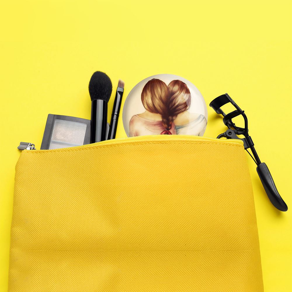 آینه های جیبی دخترونه خندالو دایره ای به قطر 7.5 سانتی متر می باشد که نه خیلی بزرگ و غیر قابل استفاده در کیف آرایشی ست و نه خیلی کوچک که تصویر خاصی در آن مشاهده نشود. سایزی استاندارد و کارآمد دارد و مناسب قرار گیری در کیف لوازم آرایش و کیف های کوچک دستی نیز هست.