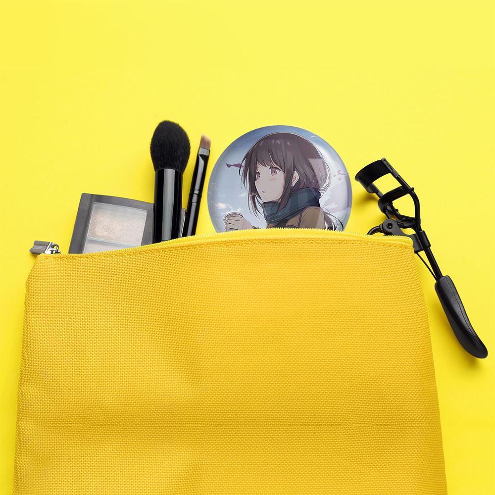 آینه های جیبی دختر انیمه ای خندالو دایره ای به قطر 7.5 سانتی متر می باشد که نه خیلی بزرگ و غیر قابل استفاده در کیف آرایشی ست و نه خیلی کوچک که تصویر خاصی در آن مشاهده نشود. سایزی استاندارد و کارآمد دارد و مناسب قرار گیری در کیف لوازم آرایش و کیف های کوچک دستی نیز هست.