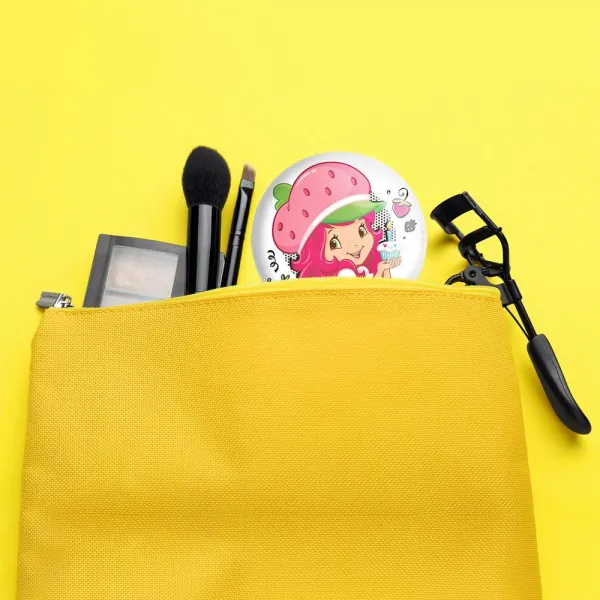 آینه های جیبی دختر توت فرنگی خندالو دایره ای به قطر 7.5 سانتی متر می باشد که نه خیلی بزرگ و غیر قابل استفاده در کیف آرایشی ست و نه خیلی کوچک که تصویر خاصی در آن مشاهده نشود. سایزی استاندارد و کارآمد دارد و مناسب قرار گیری در کیف لوازم آرایش و کیف های کوچک دستی نیز هست.