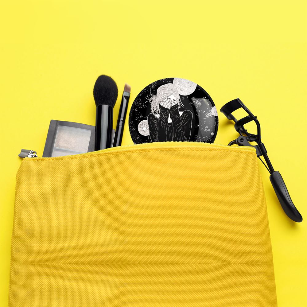 آینه های جیبی دختر غمگین خندالو دایره ای به قطر 7.5 سانتی متر می باشد که نه خیلی بزرگ و غیر قابل استفاده در کیف آرایشی ست و نه خیلی کوچک که تصویر خاصی در آن مشاهده نشود. سایزی استاندارد و کارآمد دارد و مناسب قرار گیری در کیف لوازم آرایش و کیف های کوچک دستی نیز هست. بدنه ی آینه جیبی دختر غمگین در قسمتی که آینه را در بر گرفته فلزی بوده و ظاهر براق و بسیار زیبایی دارد. چاپ طرح در پشت آینه بوسیله چاپگرهای دیجیتال شش رنگ با شفافیت و کیفیتی مثال زدنی انجام گرفته و با روکش لمینت حرارتی پوشیده شده که در مقابل آسیب و خط و خش مقاوم بوده و کیفیت بالایی دارد. آینه های جیبی دختر غمگین خندالو با تنوع طرحی بسیار بالا، سلیقه هر نوع مخاطبی را تامین میکند.