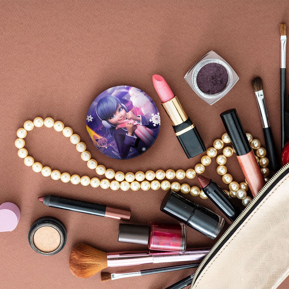 آینه های جیبی دختر کفشدوزکی و پسر گربه ای خندالو دایره ای به قطر 7.5 سانتی متر می باشد که نه خیلی بزرگ و غیر قابل استفاده در کیف آرایشی ست و نه خیلی کوچک که تصویر خاصی در آن مشاهده نشود. سایزی استاندارد و کارآمد دارد و مناسب قرار گیری در کیف لوازم آرایش و کیف های کوچک دستی نیز هست.