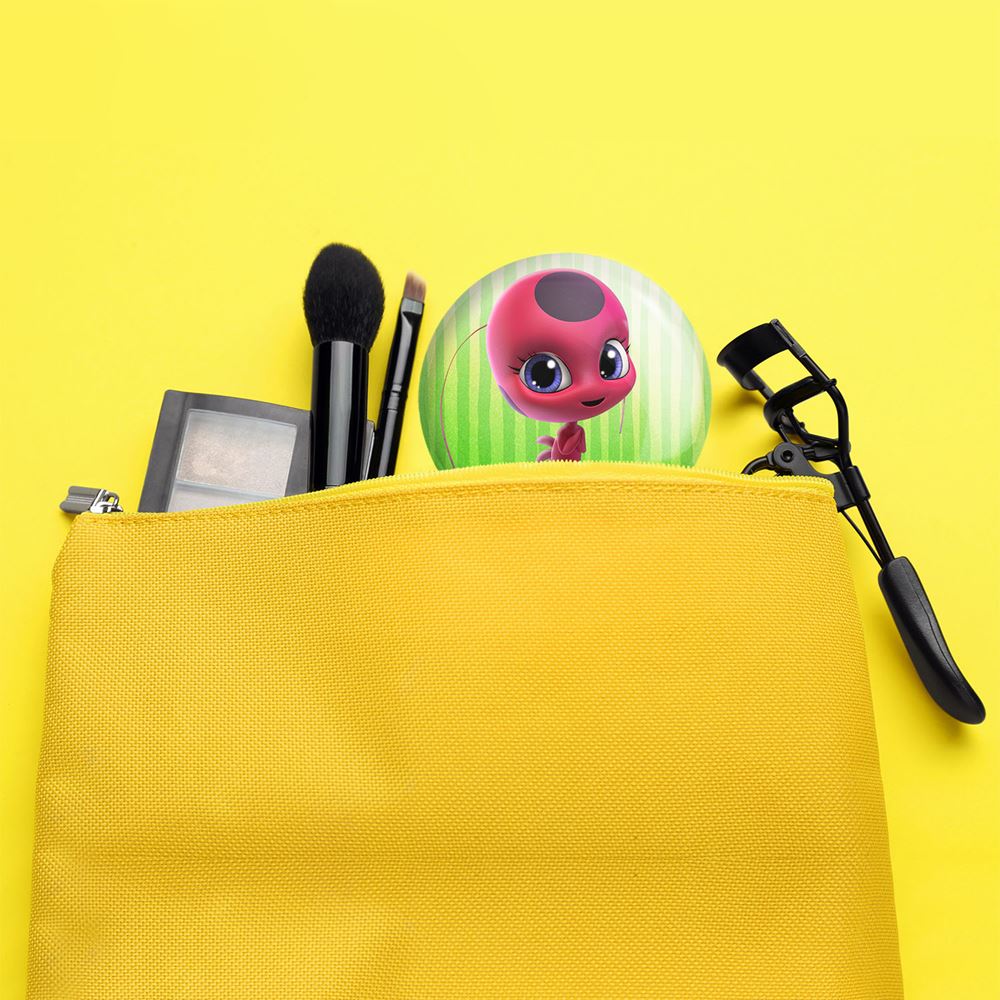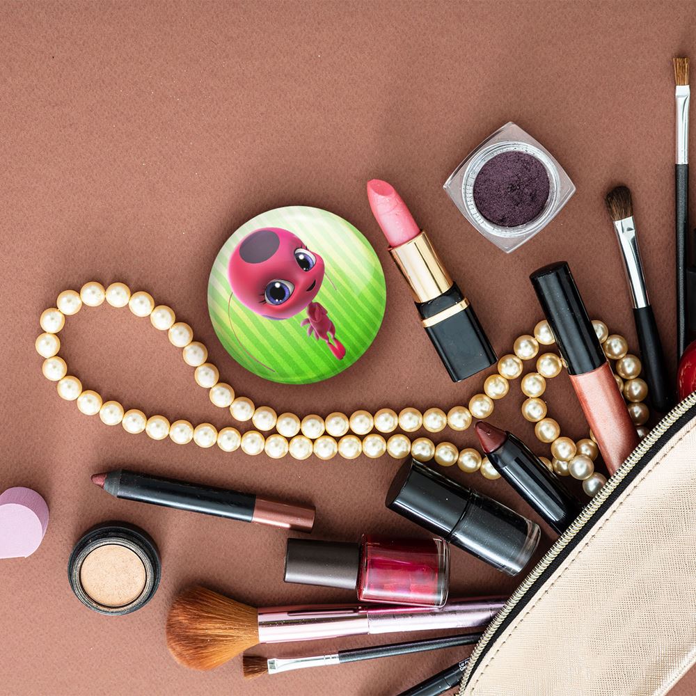 آینه های جیبی دختر کفشدوزکی خندالو دایره ای به قطر 7.5 سانتی متر می باشد که نه خیلی بزرگ و غیر قابل استفاده در کیف آرایشی ست و نه خیلی کوچک که تصویر خاصی در آن مشاهده نشود. سایزی استاندارد و کارآمد دارد و مناسب قرار گیری در کیف لوازم آرایش و کیف های کوچک دستی نیز هست. بدنه ی آینه جیبی دختر کفشدوزکی در قسمتی که آینه را در بر گرفته فلزی بوده و ظاهر براق و بسیار زیبایی دارد. چاپ طرح در پشت آینه بوسیله چاپگرهای دیجیتال شش رنگ با شفافیت و کیفیتی مثال زدنی انجام گرفته و با روکش لمینت حرارتی پوشیده شده که در مقابل آسیب و خط و خش مقاوم بوده و کیفیت بالایی دارد. آینه های جیبی دختر کفشدوزکی خندالو با تنوع طرحی بسیار بالا، سلیقه هر نوع مخاطبی را تامین میکند.