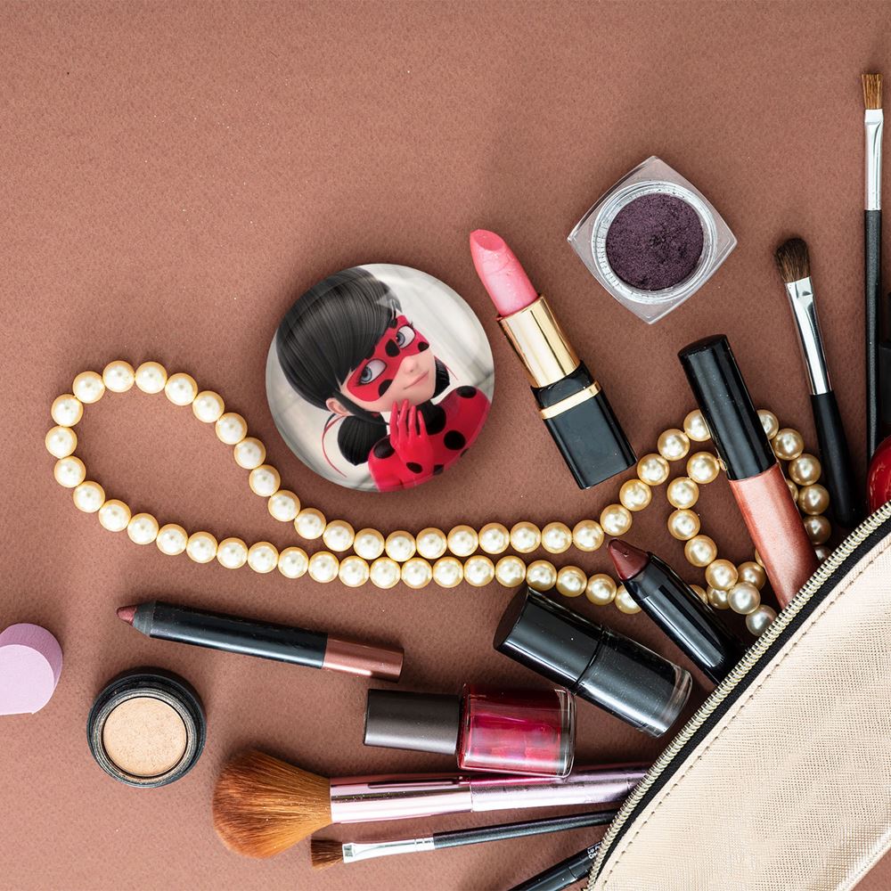 آینه های جیبی دختر کفشدوزکی خندالو دایره ای به قطر 7.5 سانتی متر می باشد که نه خیلی بزرگ و غیر قابل استفاده در کیف آرایشی ست و نه خیلی کوچک که تصویر خاصی در آن مشاهده نشود. سایزی استاندارد و کارآمد دارد و مناسب قرار گیری در کیف لوازم آرایش و کیف های کوچک دستی نیز هست.