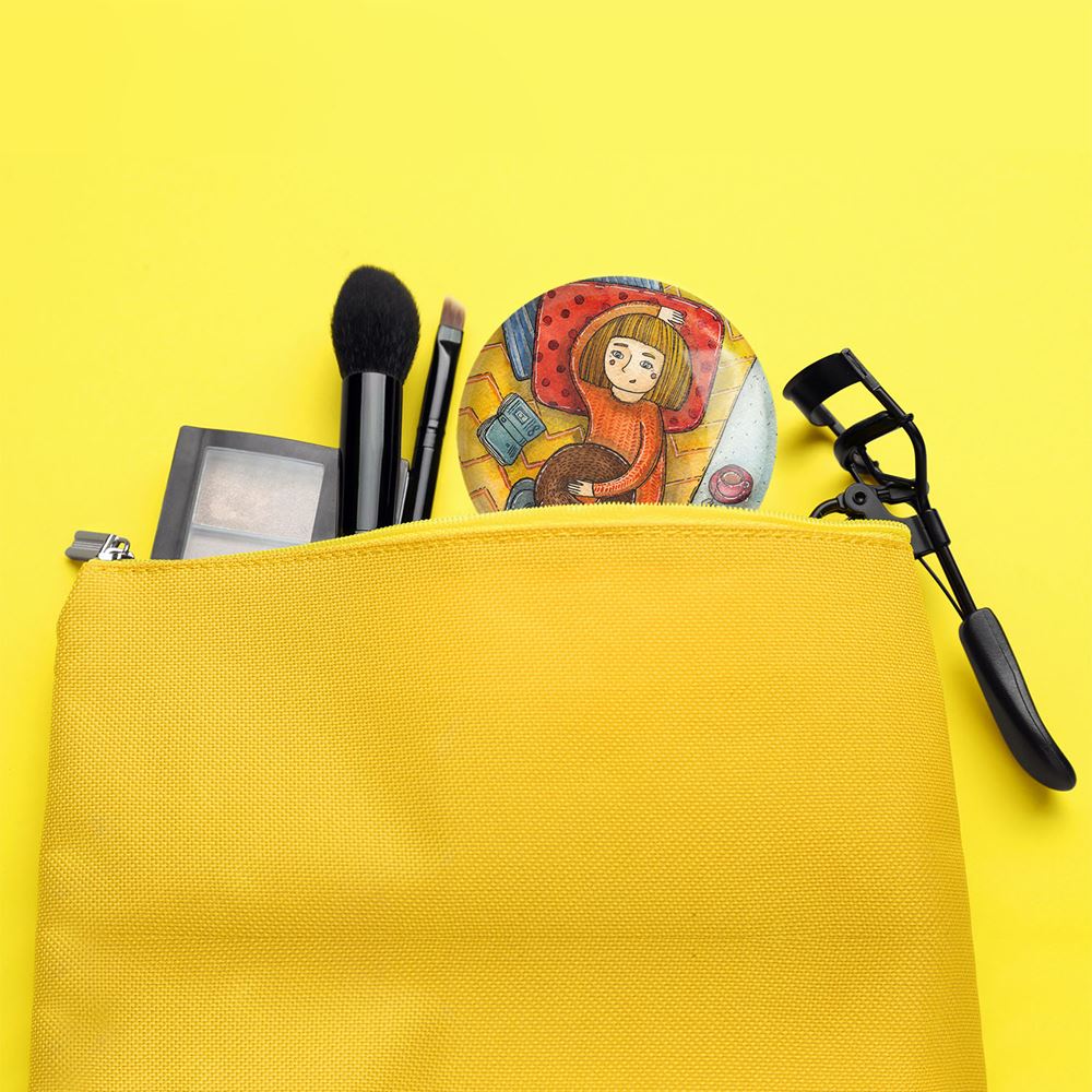 آینه های جیبی دختر خندالو دایره ای به قطر 7.5 سانتی متر می باشد که نه خیلی بزرگ و غیر قابل استفاده در کیف آرایشی ست و نه خیلی کوچک که تصویر خاصی در آن مشاهده نشود. سایزی استاندارد و کارآمد دارد و مناسب قرار گیری در کیف لوازم آرایش و کیف های کوچک دستی نیز هست.