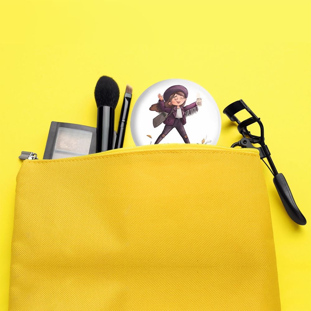 آینه های جیبی دختر خندالو دایره ای به قطر 7.5 سانتی متر می باشد که نه خیلی بزرگ و غیر قابل استفاده در کیف آرایشی ست و نه خیلی کوچک که تصویر خاصی در آن مشاهده نشود. سایزی استاندارد و کارآمد دارد و مناسب قرار گیری در کیف لوازم آرایش و کیف های کوچک دستی نیز هست.