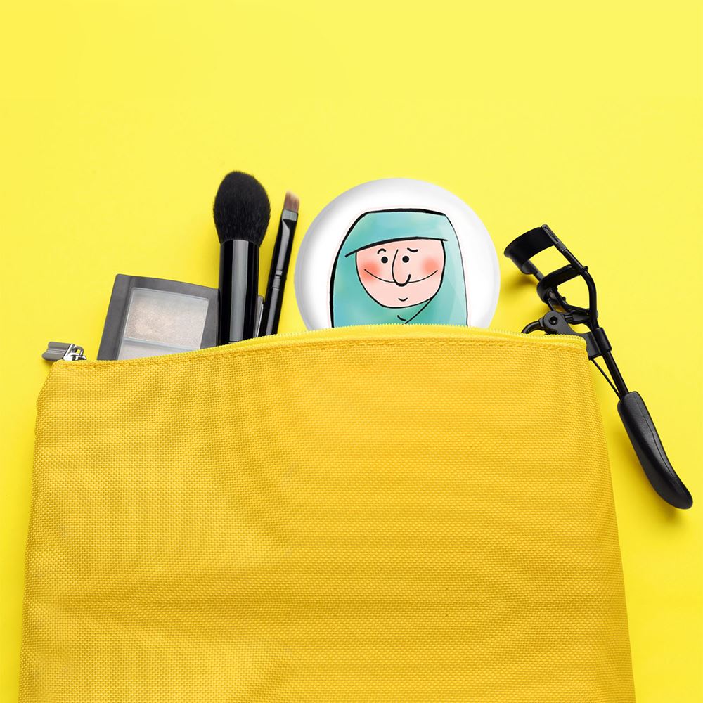 آینه های جیبی دختر خندالو دایره ای به قطر 7.5 سانتی متر می باشد که نه خیلی بزرگ و غیر قابل استفاده در کیف آرایشی ست و نه خیلی کوچک که تصویر خاصی در آن مشاهده نشود. سایزی استاندارد و کارآمد دارد و مناسب قرار گیری در کیف لوازم آرایش و کیف های کوچک دستی نیز هست.