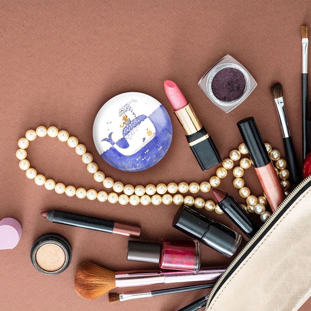 آینه های جیبی دلفین خندالو دایره ای به قطر 7.5 سانتی متر می باشد که نه خیلی بزرگ و غیر قابل استفاده در کیف آرایشی ست و نه خیلی کوچک که تصویر خاصی در آن مشاهده نشود. سایزی استاندارد و کارآمد دارد و مناسب قرار گیری در کیف لوازم آرایش و کیف های کوچک دستی نیز هست. بدنه ی آینه جیبی دلفین در قسمتی که آینه را در بر گرفته فلزی بوده و ظاهر براق و بسیار زیبایی دارد. چاپ طرح در پشت آینه بوسیله چاپگرهای دیجیتال شش رنگ با شفافیت و کیفیتی مثال زدنی انجام گرفته و با روکش لمینت حرارتی پوشیده شده که در مقابل آسیب و خط و خش مقاوم بوده و کیفیت بالایی دارد. آینه های جیبی دلفین خندالو با تنوع طرحی بسیار بالا، سلیقه هر نوع مخاطبی را تامین میکند.