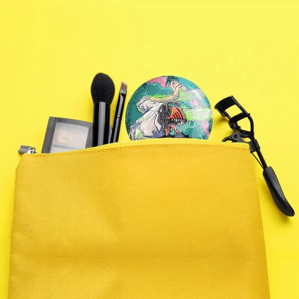 آینه های جیبی دنجی انیمه مرد اره ای Chainsaw Man خندالو دایره ای به قطر 7.5 سانتی متر می باشد که نه خیلی بزرگ و غیر قابل استفاده در کیف آرایشی ست و نه خیلی کوچک که تصویر خاصی در آن مشاهده نشود. سایزی استاندارد و کارآمد دارد و مناسب قرار گیری در کیف لوازم آرایش و کیف های کوچک دستی نیز هست. بدنه ی آینه جیبی دنجی انیمه مرد اره ای Chainsaw Man در قسمتی که آینه را در بر گرفته فلزی بوده و ظاهر براق و بسیار زیبایی دارد. چاپ طرح در پشت آینه بوسیله چاپگرهای دیجیتال شش رنگ با شفافیت و کیفیتی مثال زدنی انجام گرفته و با روکش لمینت حرارتی پوشیده شده که در مقابل آسیب و خط و خش مقاوم بوده و کیفیت بالایی دارد. آینه های جیبی دنجی انیمه مرد اره ای Chainsaw Man خندالو با تنوع طرحی بسیار بالا، سلیقه هر نوع مخاطبی را تامین میکند.