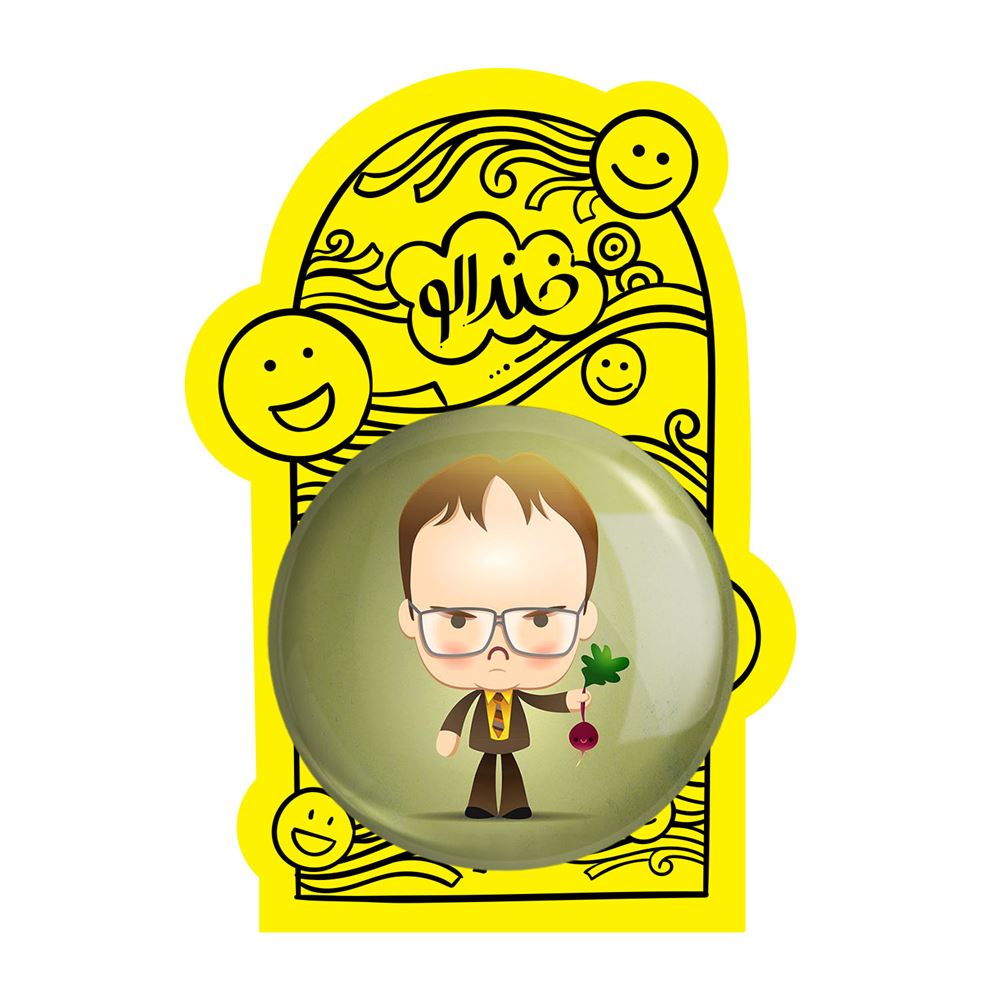 آینه های جیبی دوایت شروت سریال آفیس The Office خندالو دایره ای به قطر 7.5 سانتی متر می باشد که نه خیلی بزرگ و غیر قابل استفاده در کیف آرایشی ست و نه خیلی کوچک که تصویر خاصی در آن مشاهده نشود. سایزی استاندارد و کارآمد دارد و مناسب قرار گیری در کیف لوازم آرایش و کیف های کوچک دستی نیز هست. بدنه ی آینه جیبی دوایت شروت سریال آفیس The Office در قسمتی که آینه را در بر گرفته فلزی بوده و ظاهر براق و بسیار زیبایی دارد. چاپ طرح در پشت آینه بوسیله چاپگرهای دیجیتال شش رنگ با شفافیت و کیفیتی مثال زدنی انجام گرفته و با روکش لمینت حرارتی پوشیده شده که در مقابل آسیب و خط و خش مقاوم بوده و کیفیت بالایی دارد. آینه های جیبی دوایت شروت سریال آفیس The Office خندالو با تنوع طرحی بسیار بالا، سلیقه هر نوع مخاطبی را تامین میکند.