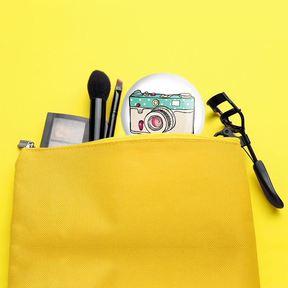 آینه های جیبی دوربین خندالو دایره ای به قطر 7.5 سانتی متر می باشد که نه خیلی بزرگ و غیر قابل استفاده در کیف آرایشی ست و نه خیلی کوچک که تصویر خاصی در آن مشاهده نشود. سایزی استاندارد و کارآمد دارد و مناسب قرار گیری در کیف لوازم آرایش و کیف های کوچک دستی نیز هست.