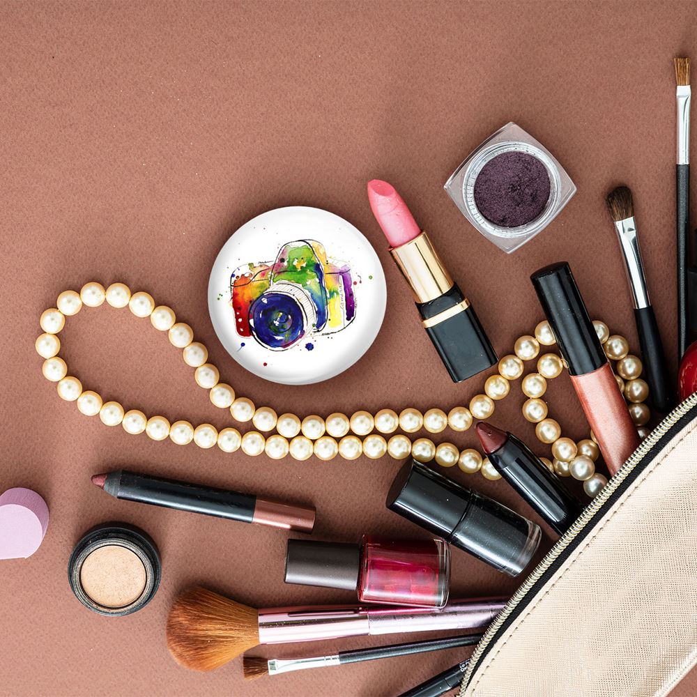 آینه های جیبی دوربین خندالو دایره ای به قطر 7.5 سانتی متر می باشد که نه خیلی بزرگ و غیر قابل استفاده در کیف آرایشی ست و نه خیلی کوچک که تصویر خاصی در آن مشاهده نشود. سایزی استاندارد و کارآمد دارد و مناسب قرار گیری در کیف لوازم آرایش و کیف های کوچک دستی نیز هست.