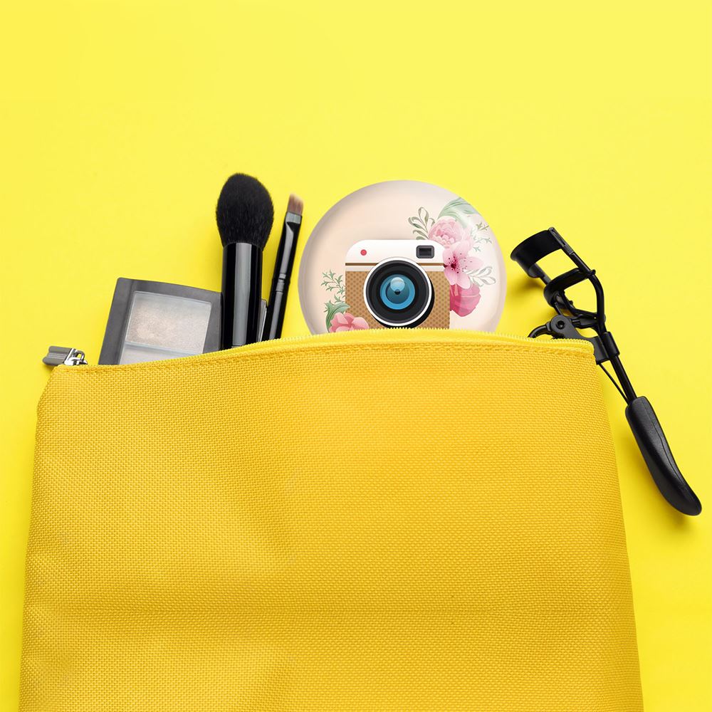 آینه های جیبی دوربین خندالو دایره ای به قطر 7.5 سانتی متر می باشد که نه خیلی بزرگ و غیر قابل استفاده در کیف آرایشی ست و نه خیلی کوچک که تصویر خاصی در آن مشاهده نشود. سایزی استاندارد و کارآمد دارد و مناسب قرار گیری در کیف لوازم آرایش و کیف های کوچک دستی نیز هست.