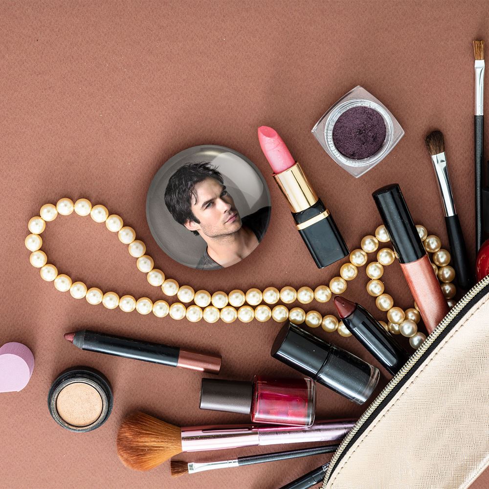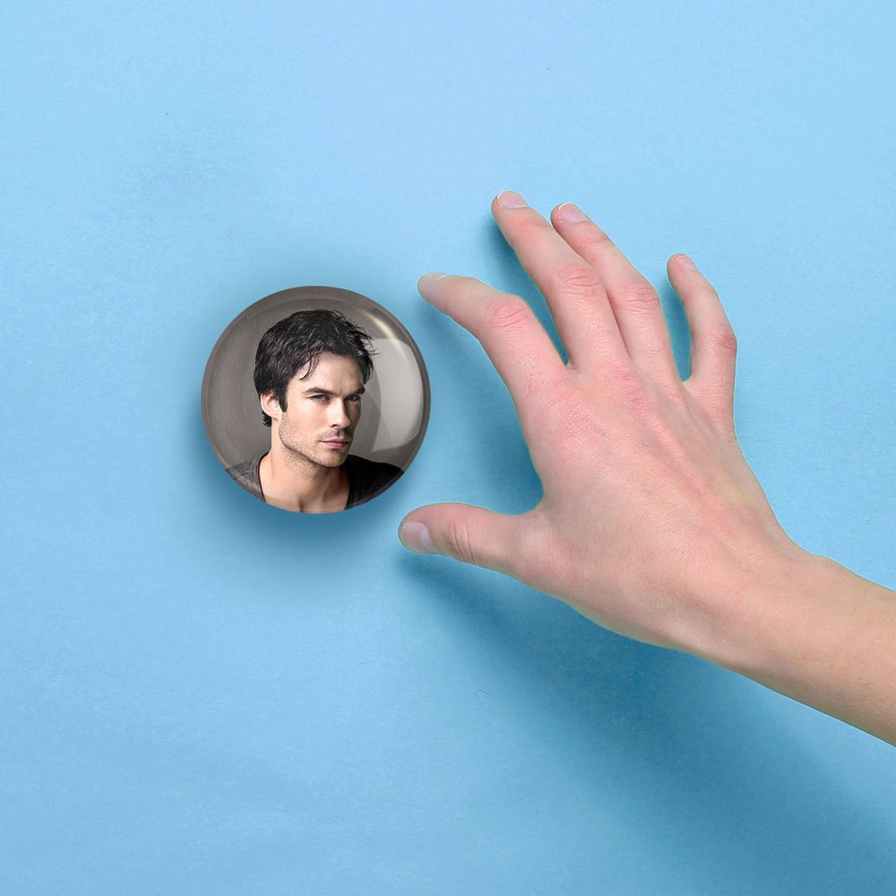 آینه های جیبی دیمون سالواتوره خاطرات یک خون آشام The Vampire Diaries خندالو دایره ای به قطر 7.5 سانتی متر می باشد که نه خیلی بزرگ و غیر قابل استفاده در کیف آرایشی ست و نه خیلی کوچک که تصویر خاصی در آن مشاهده نشود. سایزی استاندارد و کارآمد دارد و مناسب قرار گیری در کیف لوازم آرایش و کیف های کوچک دستی نیز هست.