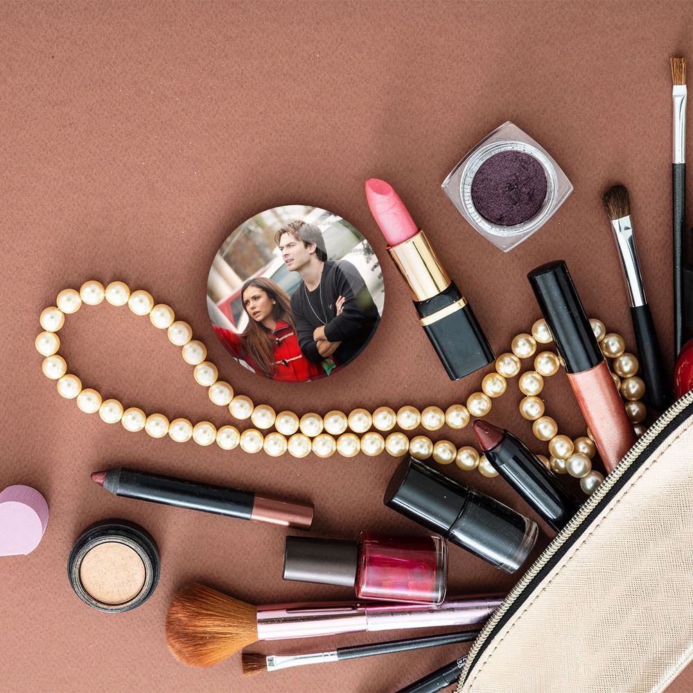 آینه های جیبی دیمون و الینا خاطرات یک خون آشام The Vampire Diaries خندالو دایره ای به قطر 7.5 سانتی متر می باشد که نه خیلی بزرگ و غیر قابل استفاده در کیف آرایشی ست و نه خیلی کوچک که تصویر خاصی در آن مشاهده نشود. سایزی استاندارد و کارآمد دارد و مناسب قرار گیری در کیف لوازم آرایش و کیف های کوچک دستی نیز هست. بدنه ی آینه جیبی دیمون و الینا خاطرات یک خون آشام The Vampire Diaries در قسمتی که آینه را در بر گرفته فلزی بوده و ظاهر براق و بسیار زیبایی دارد. چاپ طرح در پشت آینه بوسیله چاپگرهای دیجیتال شش رنگ با شفافیت و کیفیتی مثال زدنی انجام گرفته و با روکش لمینت حرارتی پوشیده شده که در مقابل آسیب و خط و خش مقاوم بوده و کیفیت بالایی دارد. آینه های جیبی دیمون و الینا خاطرات یک خون آشام The Vampire Diaries خندالو با تنوع طرحی بسیار بالا، سلیقه هر نوع مخاطبی را تامین میکند.