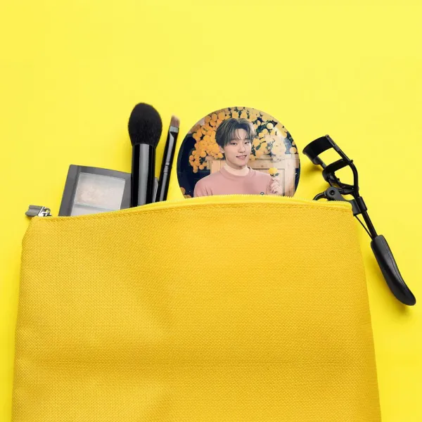 آینه های جیبی دینو گروه سونتین Seventeen خندالو دایره ای به قطر 7.5 سانتی متر می باشد که نه خیلی بزرگ و غیر قابل استفاده در کیف آرایشی ست و نه خیلی کوچک که تصویر خاصی در آن مشاهده نشود. سایزی استاندارد و کارآمد دارد و مناسب قرار گیری در کیف لوازم آرایش و کیف های کوچک دستی نیز هست.