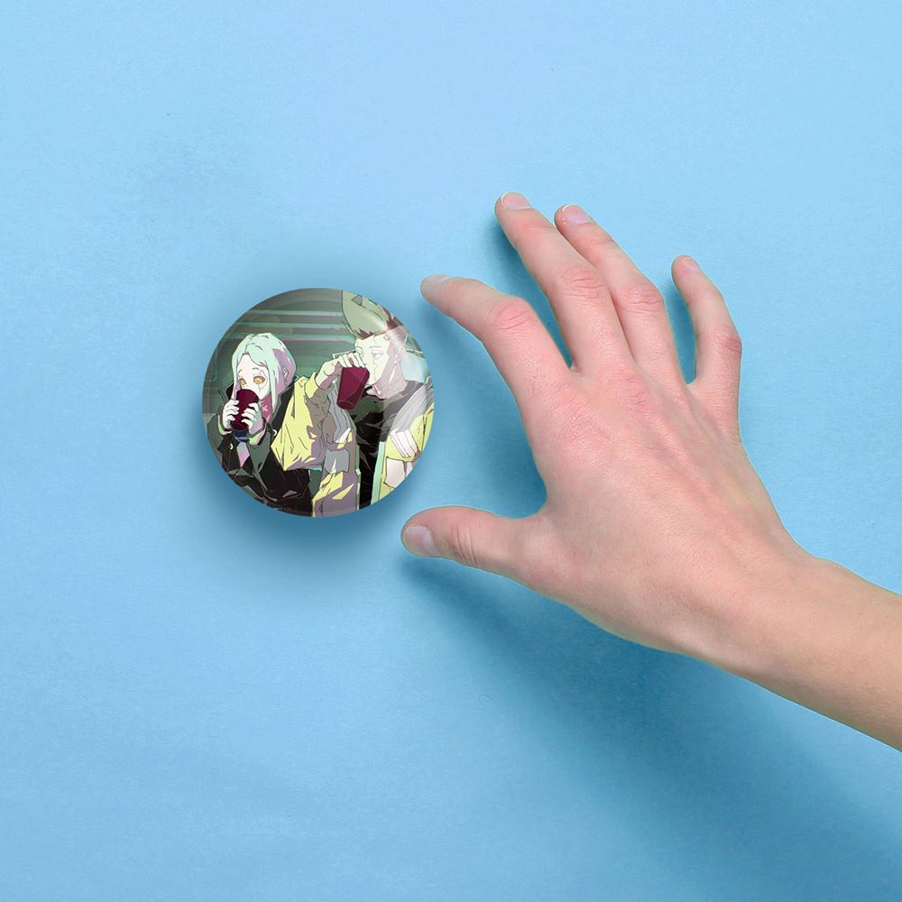 آینه های جیبی دیوید و لوسی انیمه سایبرپانک خندالو دایره ای به قطر 7.5 سانتی متر می باشد که نه خیلی بزرگ و غیر قابل استفاده در کیف آرایشی ست و نه خیلی کوچک که تصویر خاصی در آن مشاهده نشود. سایزی استاندارد و کارآمد دارد و مناسب قرار گیری در کیف لوازم آرایش و کیف های کوچک دستی نیز هست. بدنه ی آینه جیبی دیوید و لوسی انیمه سایبرپانک در قسمتی که آینه را در بر گرفته فلزی بوده و ظاهر براق و بسیار زیبایی دارد. چاپ طرح در پشت آینه بوسیله چاپگرهای دیجیتال شش رنگ با شفافیت و کیفیتی مثال زدنی انجام گرفته و با روکش لمینت حرارتی پوشیده شده که در مقابل آسیب و خط و خش مقاوم بوده و کیفیت بالایی دارد. آینه های جیبی دیوید و لوسی انیمه سایبرپانک خندالو با تنوع طرحی بسیار بالا، سلیقه هر نوع مخاطبی را تامین میکند.