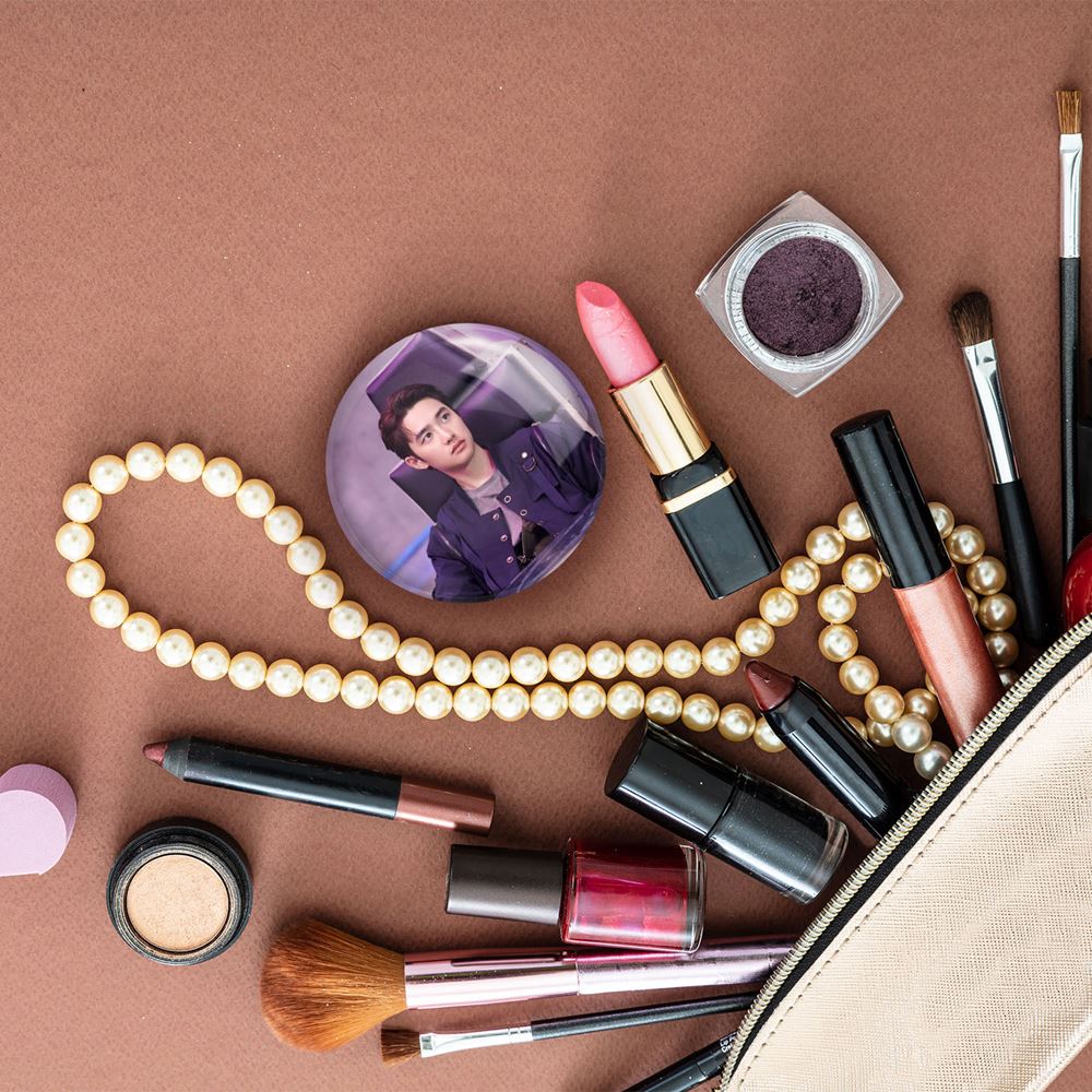 آینه های جیبی دی او گروه اکسو EXO خندالو دایره ای به قطر 7.5 سانتی متر می باشد که نه خیلی بزرگ و غیر قابل استفاده در کیف آرایشی ست و نه خیلی کوچک که تصویر خاصی در آن مشاهده نشود. سایزی استاندارد و کارآمد دارد و مناسب قرار گیری در کیف لوازم آرایش و کیف های کوچک دستی نیز هست.