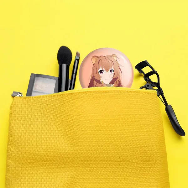 آینه های جیبی رافتالیا انیمه ظهور قهرمان سپر خندالو دایره ای به قطر 7.5 سانتی متر می باشد که نه خیلی بزرگ و غیر قابل استفاده در کیف آرایشی ست و نه خیلی کوچک که تصویر خاصی در آن مشاهده نشود. سایزی استاندارد و کارآمد دارد و مناسب قرار گیری در کیف لوازم آرایش و کیف های کوچک دستی نیز هست.
