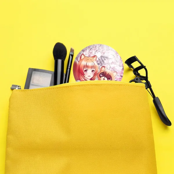 آینه های جیبی رافتالیا انیمه ظهور قهرمان سپر خندالو دایره ای به قطر 7.5 سانتی متر می باشد که نه خیلی بزرگ و غیر قابل استفاده در کیف آرایشی ست و نه خیلی کوچک که تصویر خاصی در آن مشاهده نشود. سایزی استاندارد و کارآمد دارد و مناسب قرار گیری در کیف لوازم آرایش و کیف های کوچک دستی نیز هست.