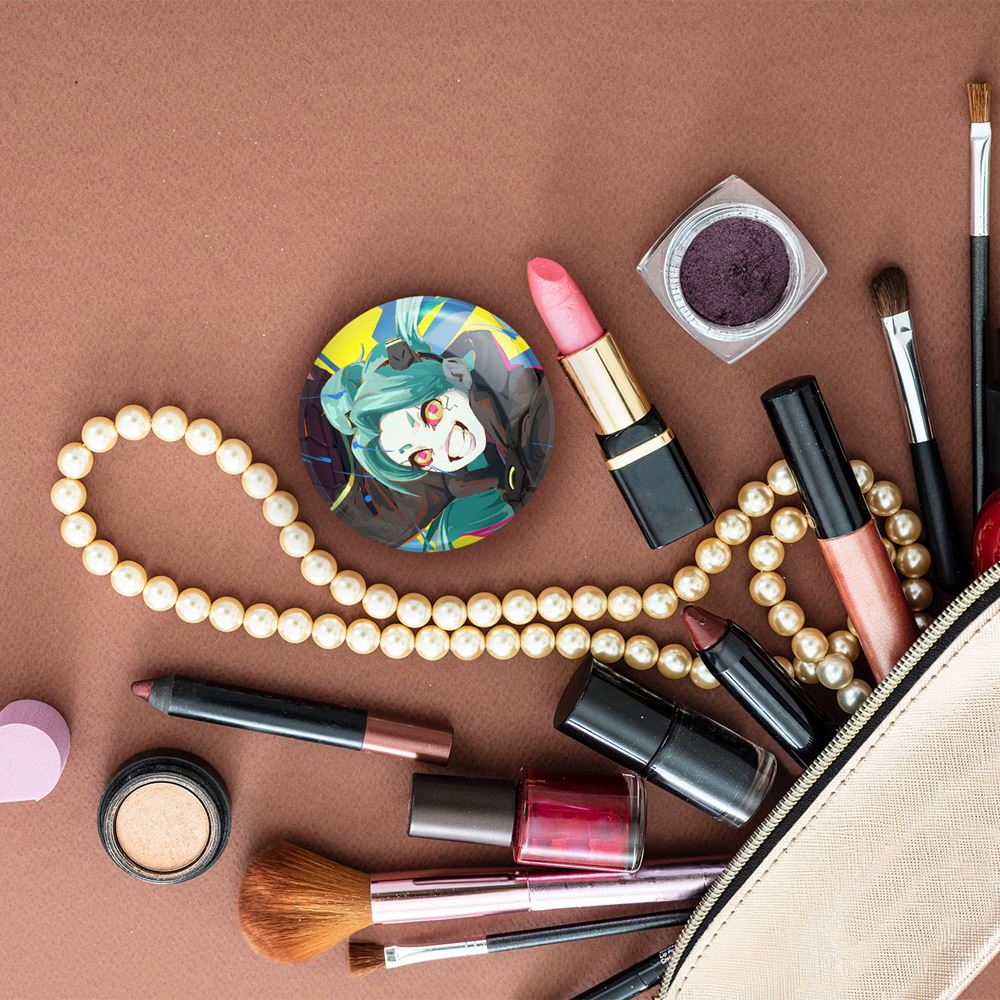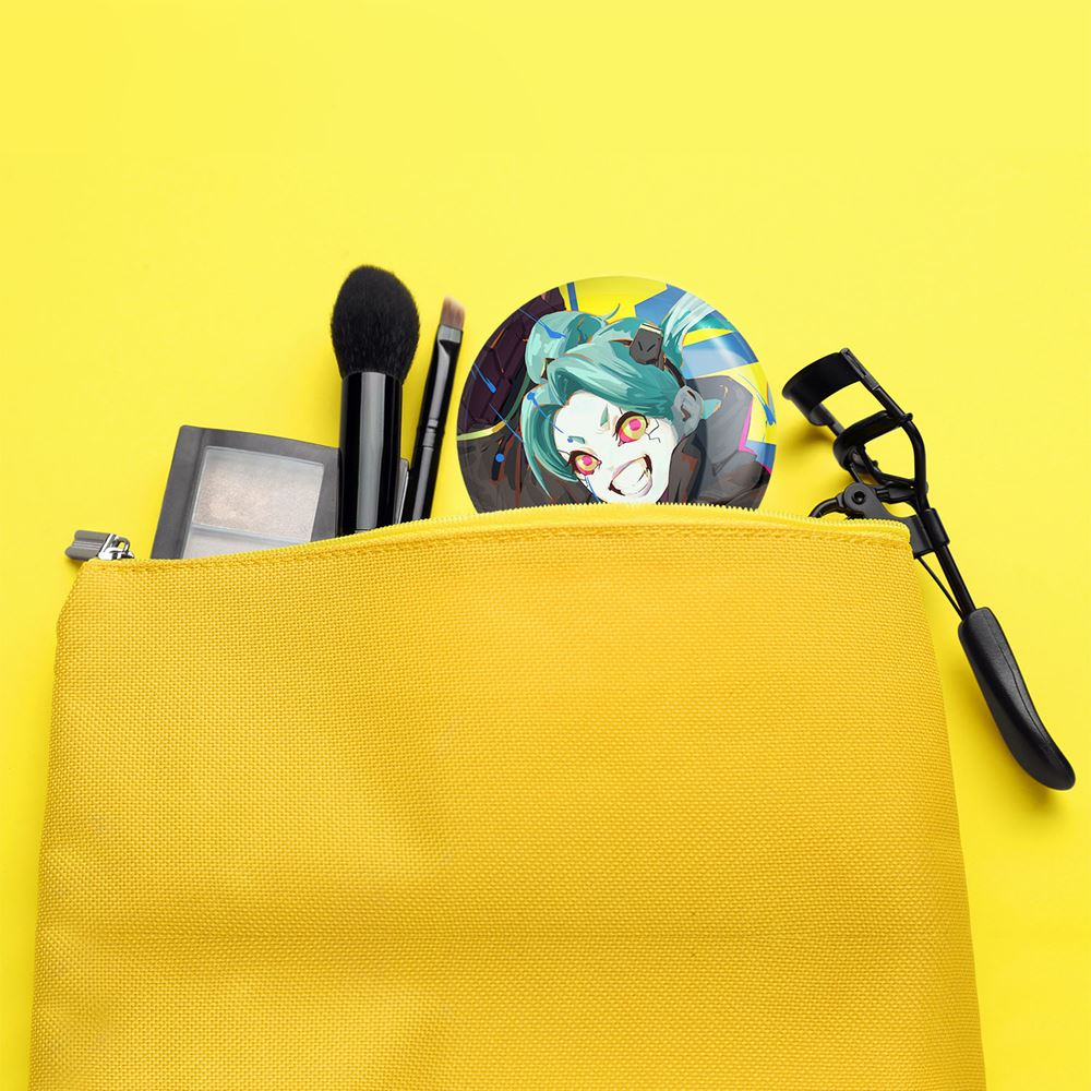 آینه های جیبی ربکا انیمه سایبرپانک خندالو دایره ای به قطر 7.5 سانتی متر می باشد که نه خیلی بزرگ و غیر قابل استفاده در کیف آرایشی ست و نه خیلی کوچک که تصویر خاصی در آن مشاهده نشود. سایزی استاندارد و کارآمد دارد و مناسب قرار گیری در کیف لوازم آرایش و کیف های کوچک دستی نیز هست.