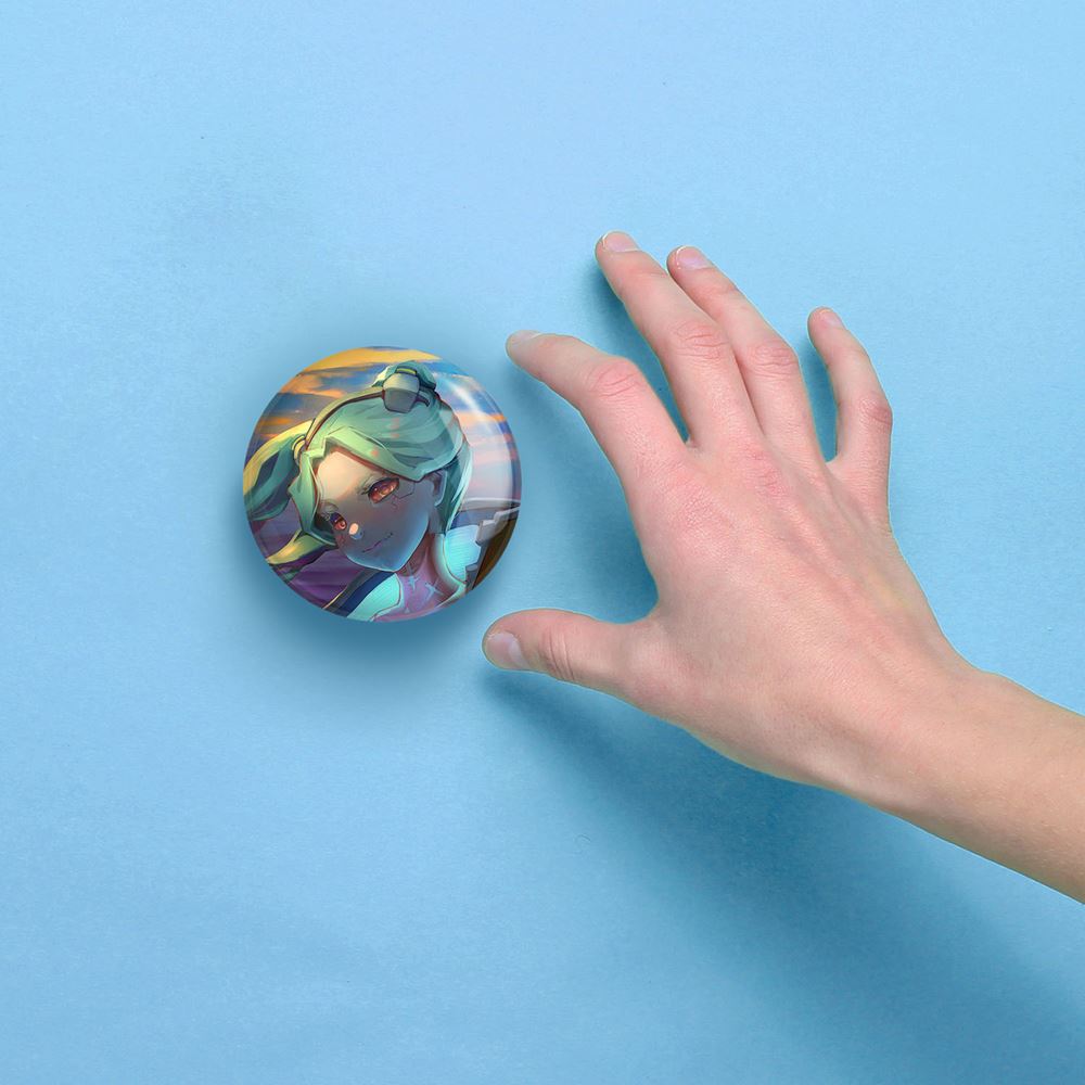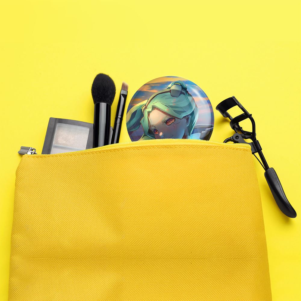 آینه های جیبی ربکا انیمه سایبرپانک خندالو دایره ای به قطر 7.5 سانتی متر می باشد که نه خیلی بزرگ و غیر قابل استفاده در کیف آرایشی ست و نه خیلی کوچک که تصویر خاصی در آن مشاهده نشود. سایزی استاندارد و کارآمد دارد و مناسب قرار گیری در کیف لوازم آرایش و کیف های کوچک دستی نیز هست.