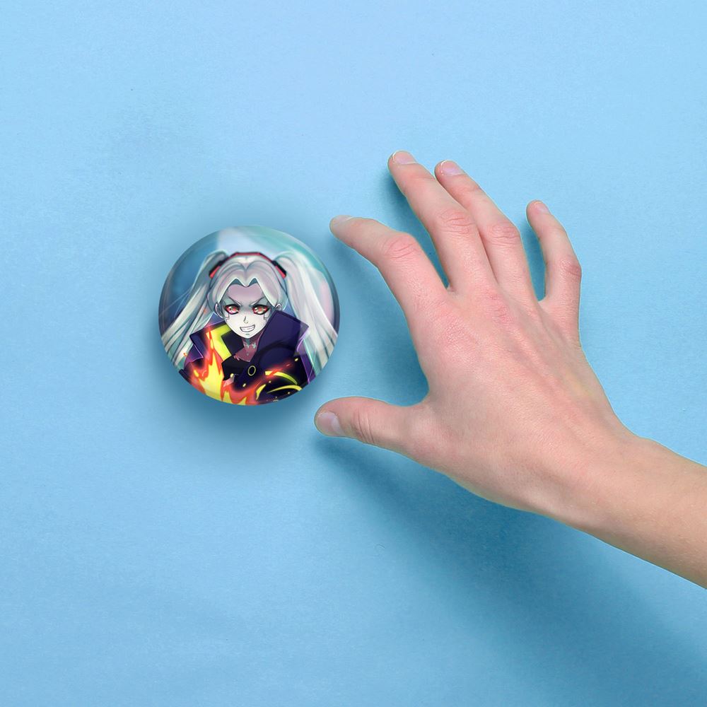 آینه های جیبی ربکا انیمه سایبرپانک خندالو دایره ای به قطر 7.5 سانتی متر می باشد که نه خیلی بزرگ و غیر قابل استفاده در کیف آرایشی ست و نه خیلی کوچک که تصویر خاصی در آن مشاهده نشود. سایزی استاندارد و کارآمد دارد و مناسب قرار گیری در کیف لوازم آرایش و کیف های کوچک دستی نیز هست. بدنه ی آینه جیبی ربکا انیمه سایبرپانک در قسمتی که آینه را در بر گرفته فلزی بوده و ظاهر براق و بسیار زیبایی دارد. چاپ طرح در پشت آینه بوسیله چاپگرهای دیجیتال شش رنگ با شفافیت و کیفیتی مثال زدنی انجام گرفته و با روکش لمینت حرارتی پوشیده شده که در مقابل آسیب و خط و خش مقاوم بوده و کیفیت بالایی دارد. آینه های جیبی ربکا انیمه سایبرپانک خندالو با تنوع طرحی بسیار بالا، سلیقه هر نوع مخاطبی را تامین میکند.