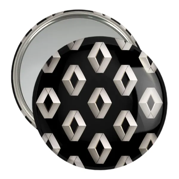 آینه های جیبی رنو Renault خندالو دایره ای به قطر 7.5 سانتی متر می باشد که نه خیلی بزرگ و غیر قابل استفاده در کیف آرایشی ست و نه خیلی کوچک که تصویر خاصی در آن مشاهده نشود. سایزی استاندارد و کارآمد دارد و مناسب قرار گیری در کیف لوازم آرایش و کیف های کوچک دستی نیز هست.