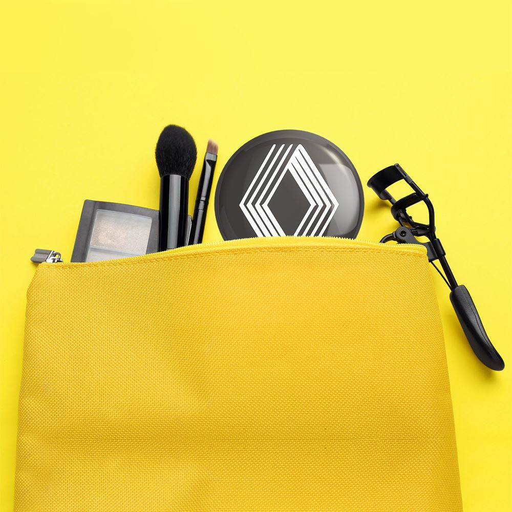 آینه های جیبی رنو Renault خندالو دایره ای به قطر 7.5 سانتی متر می باشد که نه خیلی بزرگ و غیر قابل استفاده در کیف آرایشی ست و نه خیلی کوچک که تصویر خاصی در آن مشاهده نشود. سایزی استاندارد و کارآمد دارد و مناسب قرار گیری در کیف لوازم آرایش و کیف های کوچک دستی نیز هست. بدنه ی آینه جیبی رنو Renault در قسمتی که آینه را در بر گرفته فلزی بوده و ظاهر براق و بسیار زیبایی دارد. چاپ طرح در پشت آینه بوسیله چاپگرهای دیجیتال شش رنگ با شفافیت و کیفیتی مثال زدنی انجام گرفته و با روکش لمینت حرارتی پوشیده شده که در مقابل آسیب و خط و خش مقاوم بوده و کیفیت بالایی دارد. آینه های جیبی رنو Renault خندالو با تنوع طرحی بسیار بالا، سلیقه هر نوع مخاطبی را تامین میکند.