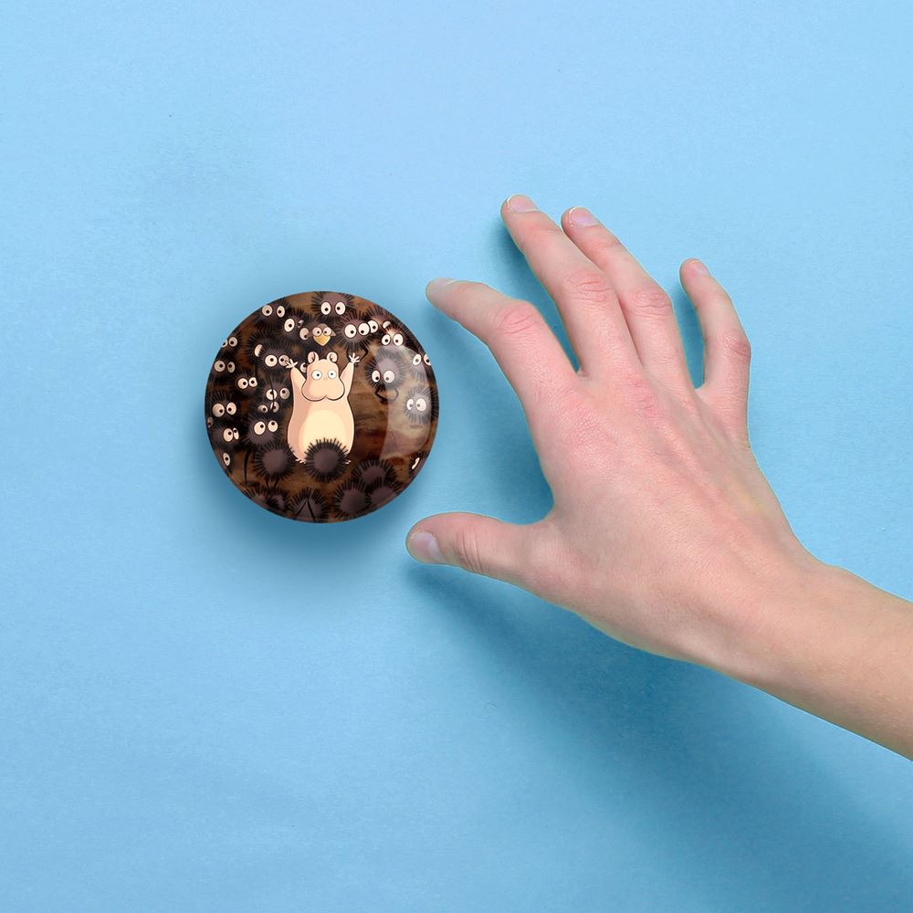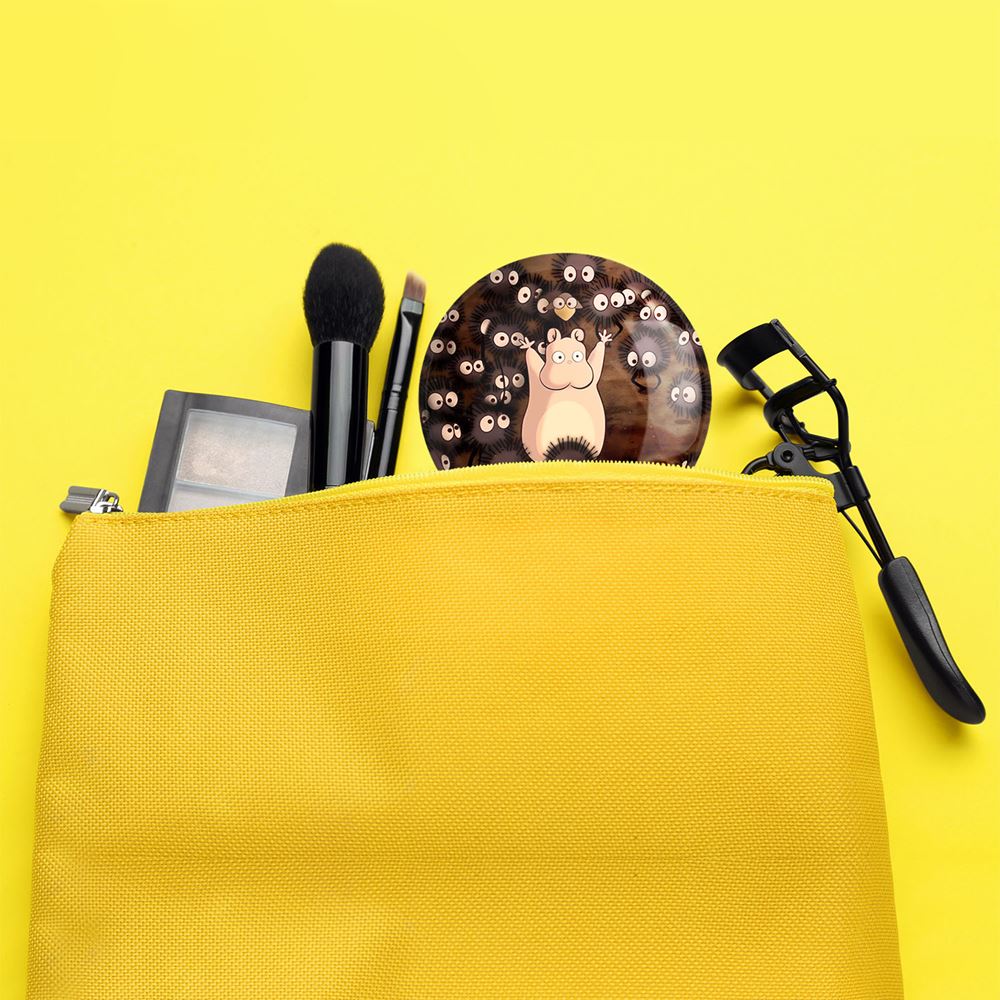 آینه های جیبی روح های محافظ رده پایین انیمه شهر اشباح Spirited Away خندالو دایره ای به قطر 7.5 سانتی متر می باشد که نه خیلی بزرگ و غیر قابل استفاده در کیف آرایشی ست و نه خیلی کوچک که تصویر خاصی در آن مشاهده نشود. سایزی استاندارد و کارآمد دارد و مناسب قرار گیری در کیف لوازم آرایش و کیف های کوچک دستی نیز هست. بدنه ی آینه جیبی روح های محافظ رده پایین انیمه شهر اشباح Spirited Away در قسمتی که آینه را در بر گرفته فلزی بوده و ظاهر براق و بسیار زیبایی دارد. چاپ طرح در پشت آینه بوسیله چاپگرهای دیجیتال شش رنگ با شفافیت و کیفیتی مثال زدنی انجام گرفته و با روکش لمینت حرارتی پوشیده شده که در مقابل آسیب و خط و خش مقاوم بوده و کیفیت بالایی دارد. آینه های جیبی روح های محافظ رده پایین انیمه شهر اشباح Spirited Away خندالو با تنوع طرحی بسیار بالا، سلیقه هر نوع مخاطبی را تامین میکند.