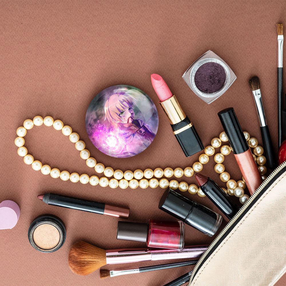 آینه های جیبی رودئوس انیمه موشوکو تنسی خندالو دایره ای به قطر 7.5 سانتی متر می باشد که نه خیلی بزرگ و غیر قابل استفاده در کیف آرایشی ست و نه خیلی کوچک که تصویر خاصی در آن مشاهده نشود. سایزی استاندارد و کارآمد دارد و مناسب قرار گیری در کیف لوازم آرایش و کیف های کوچک دستی نیز هست.