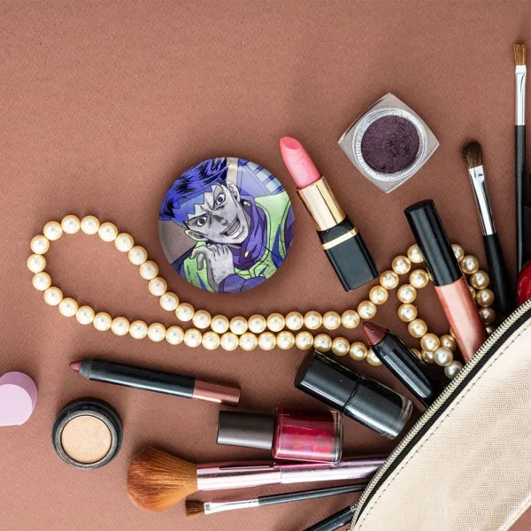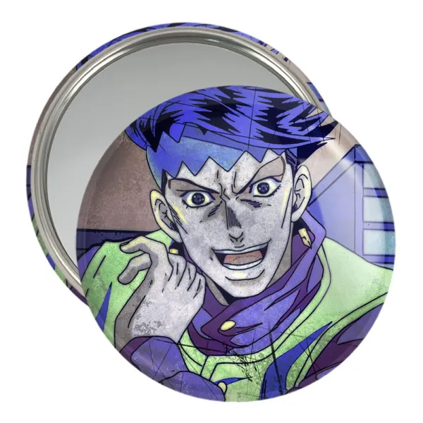 آینه های جیبی روهان کیشیبه انیمه جوجو Jojo خندالو دایره ای به قطر 7.5 سانتی متر می باشد که نه خیلی بزرگ و غیر قابل استفاده در کیف آرایشی ست و نه خیلی کوچک که تصویر خاصی در آن مشاهده نشود. سایزی استاندارد و کارآمد دارد و مناسب قرار گیری در کیف لوازم آرایش و کیف های کوچک دستی نیز هست. بدنه ی آینه جیبی روهان کیشیبه انیمه جوجو Jojo در قسمتی که آینه را در بر گرفته فلزی بوده و ظاهر براق و بسیار زیبایی دارد. چاپ طرح در پشت آینه بوسیله چاپگرهای دیجیتال شش رنگ با شفافیت و کیفیتی مثال زدنی انجام گرفته و با روکش لمینت حرارتی پوشیده شده که در مقابل آسیب و خط و خش مقاوم بوده و کیفیت بالایی دارد. آینه های جیبی روهان کیشیبه انیمه جوجو Jojo خندالو با تنوع طرحی بسیار بالا، سلیقه هر نوع مخاطبی را تامین میکند.