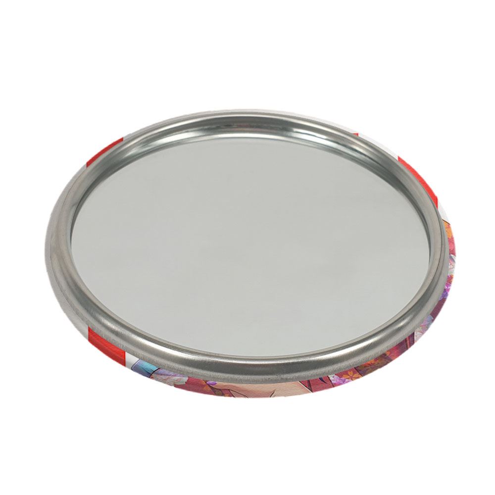 آینه های جیبی روکسی انیمه موشوکو تنسی خندالو دایره ای به قطر 7.5 سانتی متر می باشد که نه خیلی بزرگ و غیر قابل استفاده در کیف آرایشی ست و نه خیلی کوچک که تصویر خاصی در آن مشاهده نشود. سایزی استاندارد و کارآمد دارد و مناسب قرار گیری در کیف لوازم آرایش و کیف های کوچک دستی نیز هست.