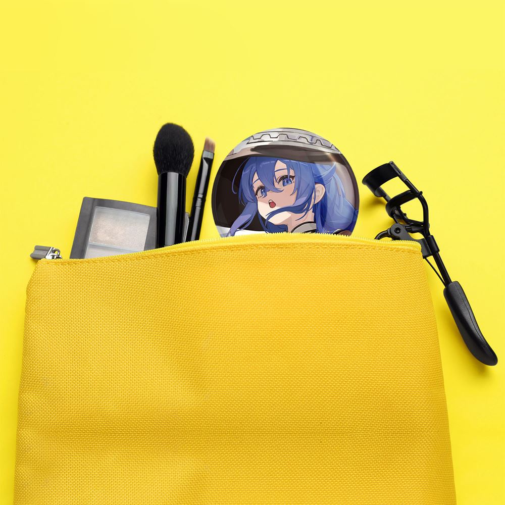 آینه های جیبی روکسی انیمه موشوکو تنسی خندالو دایره ای به قطر 7.5 سانتی متر می باشد که نه خیلی بزرگ و غیر قابل استفاده در کیف آرایشی ست و نه خیلی کوچک که تصویر خاصی در آن مشاهده نشود. سایزی استاندارد و کارآمد دارد و مناسب قرار گیری در کیف لوازم آرایش و کیف های کوچک دستی نیز هست.