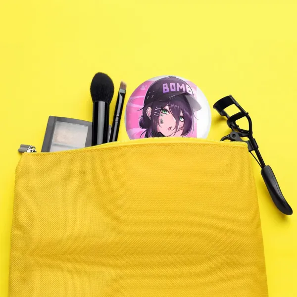 آینه های جیبی ریزه انیمه مرد اره ای Chainsaw Man خندالو دایره ای به قطر 7.5 سانتی متر می باشد که نه خیلی بزرگ و غیر قابل استفاده در کیف آرایشی ست و نه خیلی کوچک که تصویر خاصی در آن مشاهده نشود. سایزی استاندارد و کارآمد دارد و مناسب قرار گیری در کیف لوازم آرایش و کیف های کوچک دستی نیز هست.