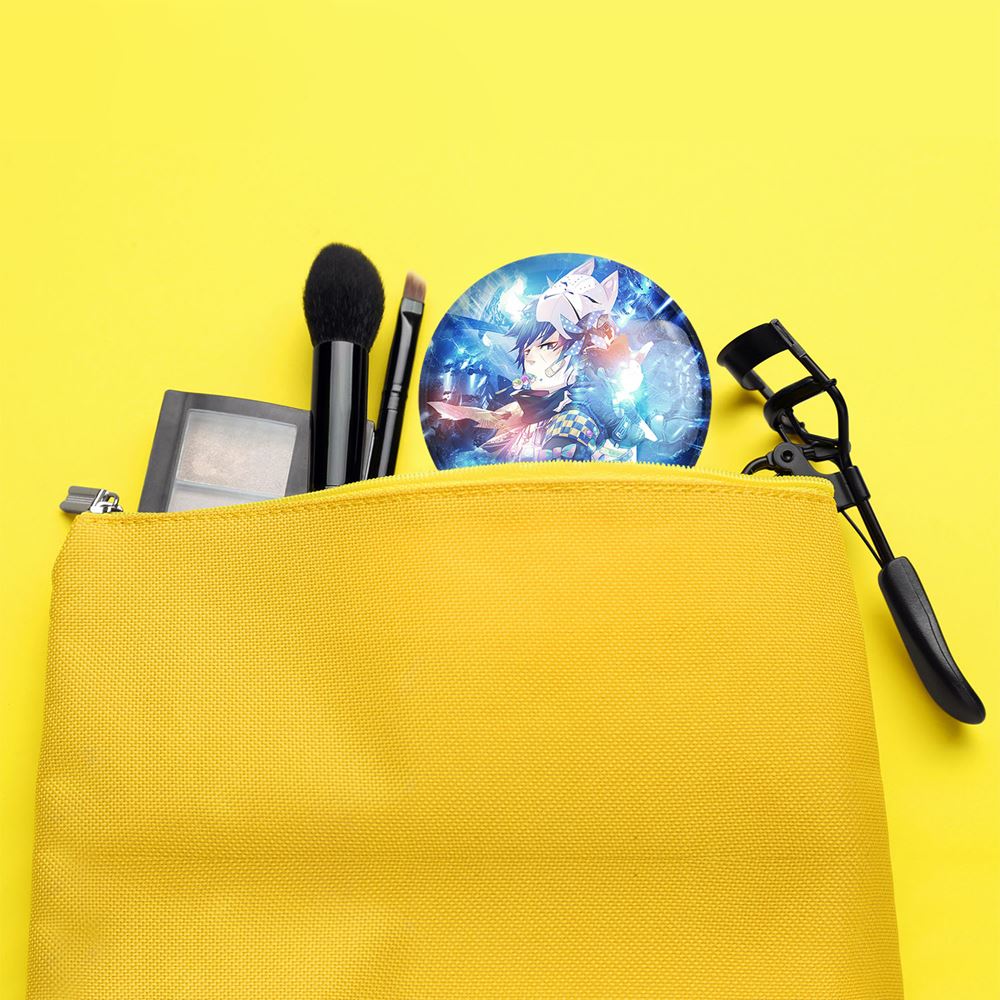 آینه های جیبی رین انیمه جنگیر آبی خندالو دایره ای به قطر 7.5 سانتی متر می باشد که نه خیلی بزرگ و غیر قابل استفاده در کیف آرایشی ست و نه خیلی کوچک که تصویر خاصی در آن مشاهده نشود. سایزی استاندارد و کارآمد دارد و مناسب قرار گیری در کیف لوازم آرایش و کیف های کوچک دستی نیز هست.