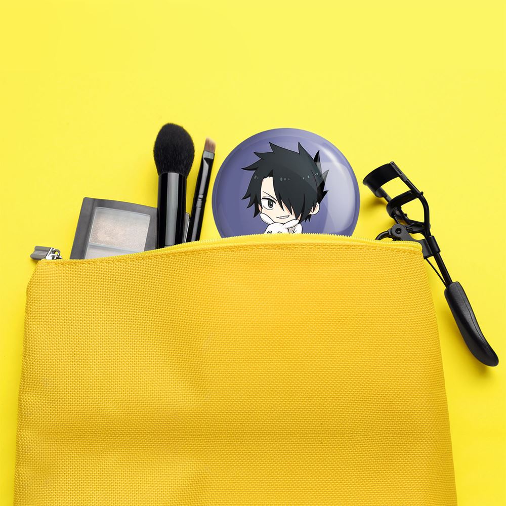 آینه های جیبی ری انیمه ناکجا آباد موعود Promised Neverland خندالو دایره ای به قطر 7.5 سانتی متر می باشد که نه خیلی بزرگ و غیر قابل استفاده در کیف آرایشی ست و نه خیلی کوچک که تصویر خاصی در آن مشاهده نشود. سایزی استاندارد و کارآمد دارد و مناسب قرار گیری در کیف لوازم آرایش و کیف های کوچک دستی نیز هست.