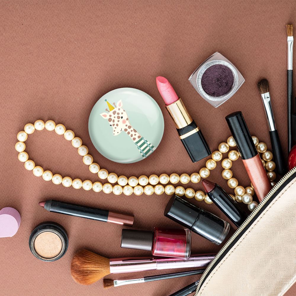آینه های جیبی زرافه خندالو دایره ای به قطر 7.5 سانتی متر می باشد که نه خیلی بزرگ و غیر قابل استفاده در کیف آرایشی ست و نه خیلی کوچک که تصویر خاصی در آن مشاهده نشود. سایزی استاندارد و کارآمد دارد و مناسب قرار گیری در کیف لوازم آرایش و کیف های کوچک دستی نیز هست.
