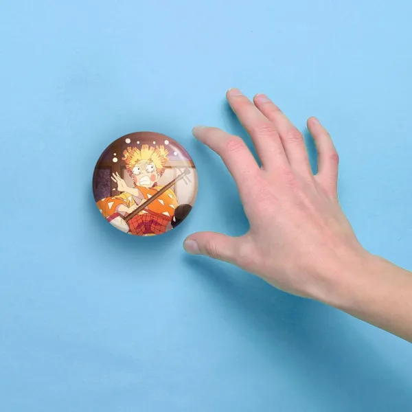 آینه های جیبی زنتیسو انیمه شیطان کش خندالو دایره ای به قطر 7.5 سانتی متر می باشد که نه خیلی بزرگ و غیر قابل استفاده در کیف آرایشی ست و نه خیلی کوچک که تصویر خاصی در آن مشاهده نشود. سایزی استاندارد و کارآمد دارد و مناسب قرار گیری در کیف لوازم آرایش و کیف های کوچک دستی نیز هست. بدنه ی آینه جیبی زنتیسو انیمه شیطان کش در قسمتی که آینه را در بر گرفته فلزی بوده و ظاهر براق و بسیار زیبایی دارد. چاپ طرح در پشت آینه بوسیله چاپگرهای دیجیتال شش رنگ با شفافیت و کیفیتی مثال زدنی انجام گرفته و با روکش لمینت حرارتی پوشیده شده که در مقابل آسیب و خط و خش مقاوم بوده و کیفیت بالایی دارد. آینه های جیبی زنتیسو انیمه شیطان کش خندالو با تنوع طرحی بسیار بالا، سلیقه هر نوع مخاطبی را تامین میکند.