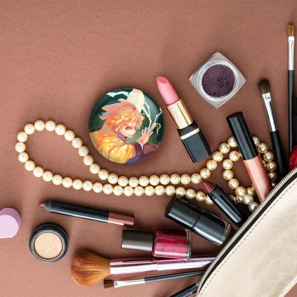 آینه های جیبی زنیتسو انیمه شیطان کش خندالو دایره ای به قطر 7.5 سانتی متر می باشد که نه خیلی بزرگ و غیر قابل استفاده در کیف آرایشی ست و نه خیلی کوچک که تصویر خاصی در آن مشاهده نشود. سایزی استاندارد و کارآمد دارد و مناسب قرار گیری در کیف لوازم آرایش و کیف های کوچک دستی نیز هست.