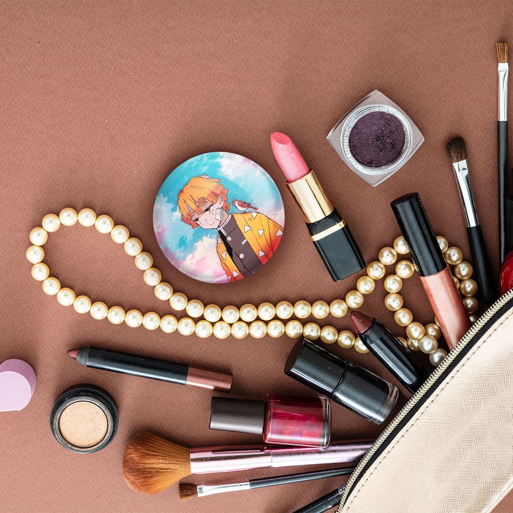 آینه های جیبی زنیتسو انیمه شیطان کش خندالو دایره ای به قطر 7.5 سانتی متر می باشد که نه خیلی بزرگ و غیر قابل استفاده در کیف آرایشی ست و نه خیلی کوچک که تصویر خاصی در آن مشاهده نشود. سایزی استاندارد و کارآمد دارد و مناسب قرار گیری در کیف لوازم آرایش و کیف های کوچک دستی نیز هست.
