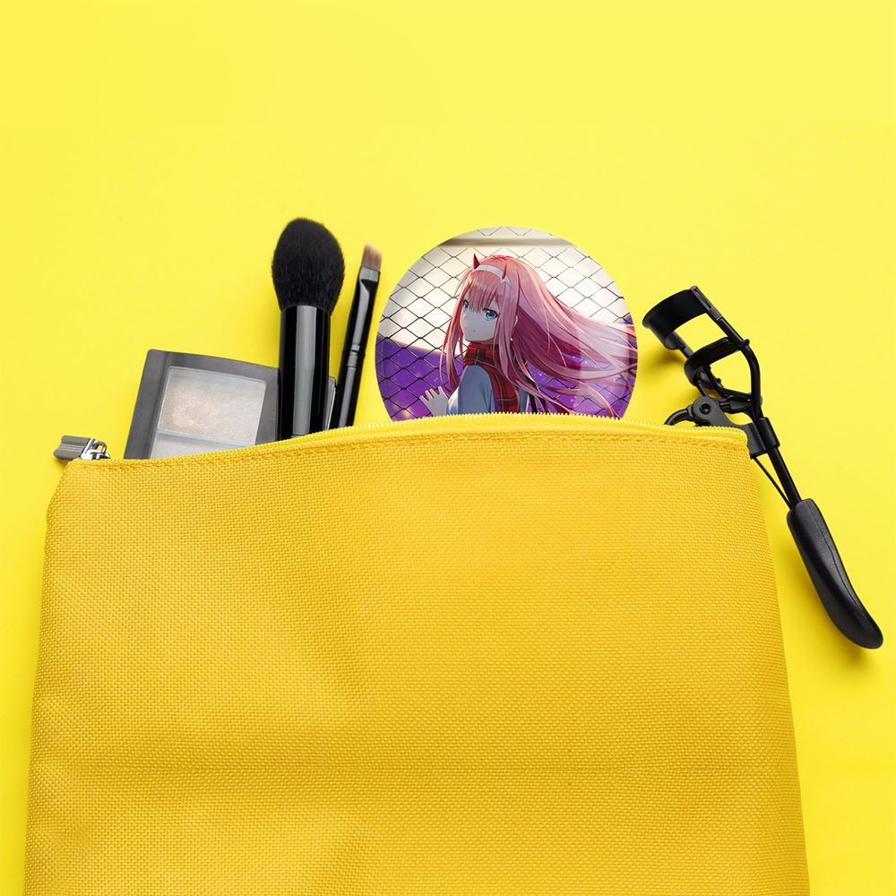 آینه های جیبی زیروتو انیمه دارلینگ در فرنکس خندالو دایره ای به قطر 7.5 سانتی متر می باشد که نه خیلی بزرگ و غیر قابل استفاده در کیف آرایشی ست و نه خیلی کوچک که تصویر خاصی در آن مشاهده نشود. سایزی استاندارد و کارآمد دارد و مناسب قرار گیری در کیف لوازم آرایش و کیف های کوچک دستی نیز هست. بدنه ی آینه جیبی زیروتو انیمه دارلینگ در فرنکس در قسمتی که آینه را در بر گرفته فلزی بوده و ظاهر براق و بسیار زیبایی دارد. چاپ طرح در پشت آینه بوسیله چاپگرهای دیجیتال شش رنگ با شفافیت و کیفیتی مثال زدنی انجام گرفته و با روکش لمینت حرارتی پوشیده شده که در مقابل آسیب و خط و خش مقاوم بوده و کیفیت بالایی دارد. آینه های جیبی زیروتو انیمه دارلینگ در فرنکس خندالو با تنوع طرحی بسیار بالا، سلیقه هر نوع مخاطبی را تامین میکند.