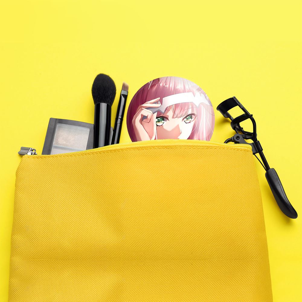 آینه های جیبی زیروتو انیمه دارلینگ در فرنکس خندالو دایره ای به قطر 7.5 سانتی متر می باشد که نه خیلی بزرگ و غیر قابل استفاده در کیف آرایشی ست و نه خیلی کوچک که تصویر خاصی در آن مشاهده نشود. سایزی استاندارد و کارآمد دارد و مناسب قرار گیری در کیف لوازم آرایش و کیف های کوچک دستی نیز هست. بدنه ی آینه جیبی زیروتو انیمه دارلینگ در فرنکس در قسمتی که آینه را در بر گرفته فلزی بوده و ظاهر براق و بسیار زیبایی دارد. چاپ طرح در پشت آینه بوسیله چاپگرهای دیجیتال شش رنگ با شفافیت و کیفیتی مثال زدنی انجام گرفته و با روکش لمینت حرارتی پوشیده شده که در مقابل آسیب و خط و خش مقاوم بوده و کیفیت بالایی دارد. آینه های جیبی زیروتو انیمه دارلینگ در فرنکس خندالو با تنوع طرحی بسیار بالا، سلیقه هر نوع مخاطبی را تامین میکند.