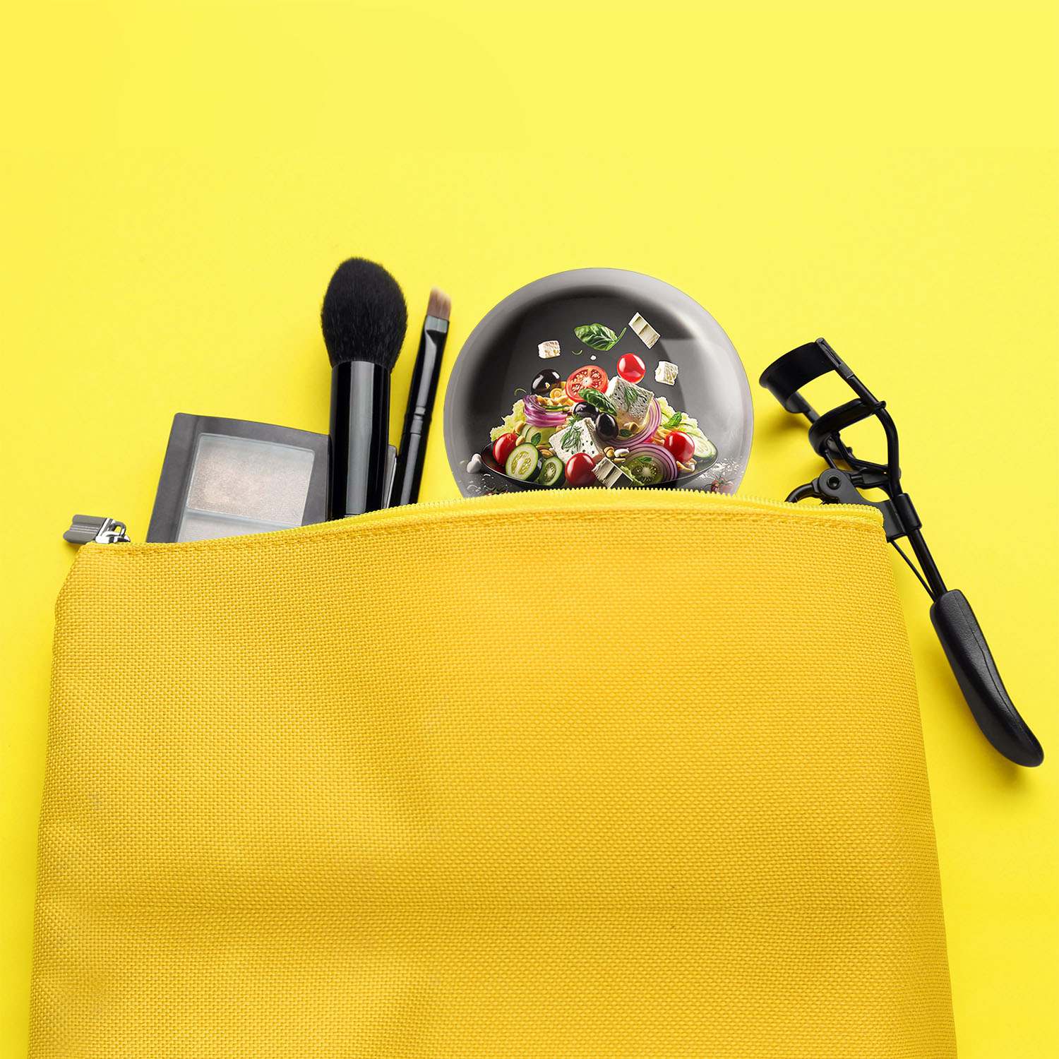 آینه های جیبی سالاد خندالو دایره ای به قطر 7.5 سانتی متر می باشد که نه خیلی بزرگ و غیر قابل استفاده در کیف آرایشی ست و نه خیلی کوچک که تصویر خاصی در آن مشاهده نشود. سایزی استاندارد و کارآمد دارد و مناسب قرار گیری در کیف لوازم آرایش و کیف های کوچک دستی نیز هست.