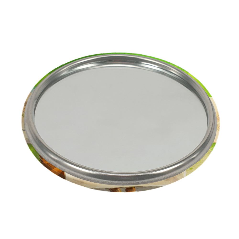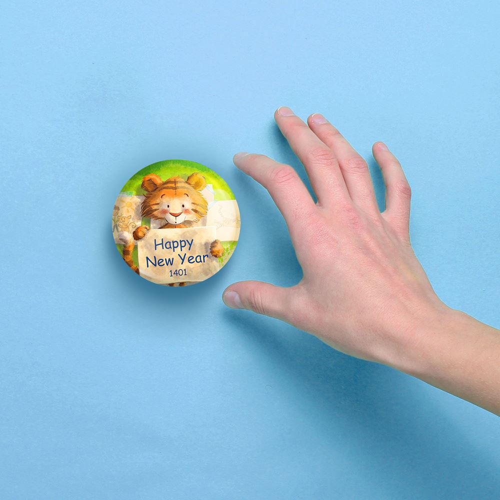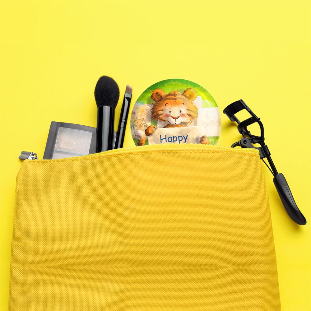 آینه های جیبی سال ببر خندالو دایره ای به قطر 7.5 سانتی متر می باشد که نه خیلی بزرگ و غیر قابل استفاده در کیف آرایشی ست و نه خیلی کوچک که تصویر خاصی در آن مشاهده نشود. سایزی استاندارد و کارآمد دارد و مناسب قرار گیری در کیف لوازم آرایش و کیف های کوچک دستی نیز هست.