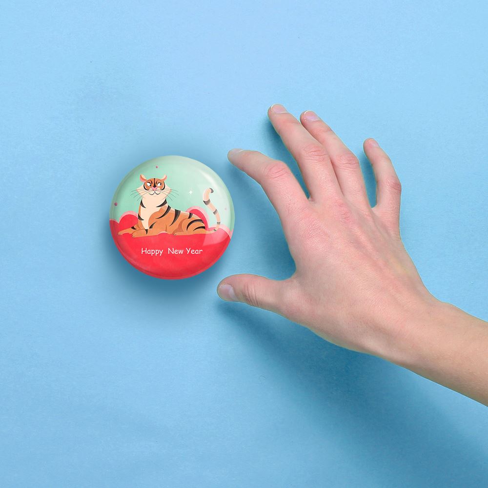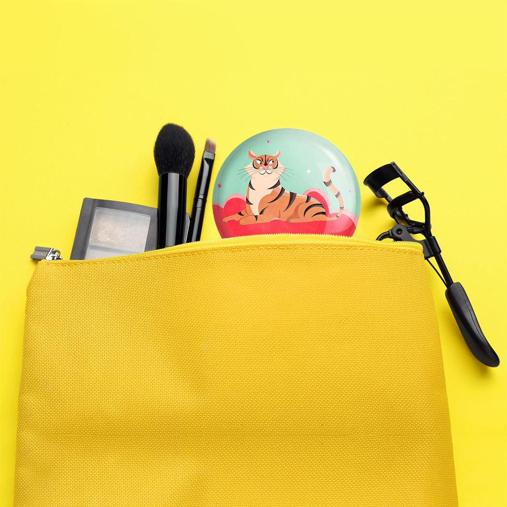 آینه های جیبی سال ببر خندالو دایره ای به قطر 7.5 سانتی متر می باشد که نه خیلی بزرگ و غیر قابل استفاده در کیف آرایشی ست و نه خیلی کوچک که تصویر خاصی در آن مشاهده نشود. سایزی استاندارد و کارآمد دارد و مناسب قرار گیری در کیف لوازم آرایش و کیف های کوچک دستی نیز هست.